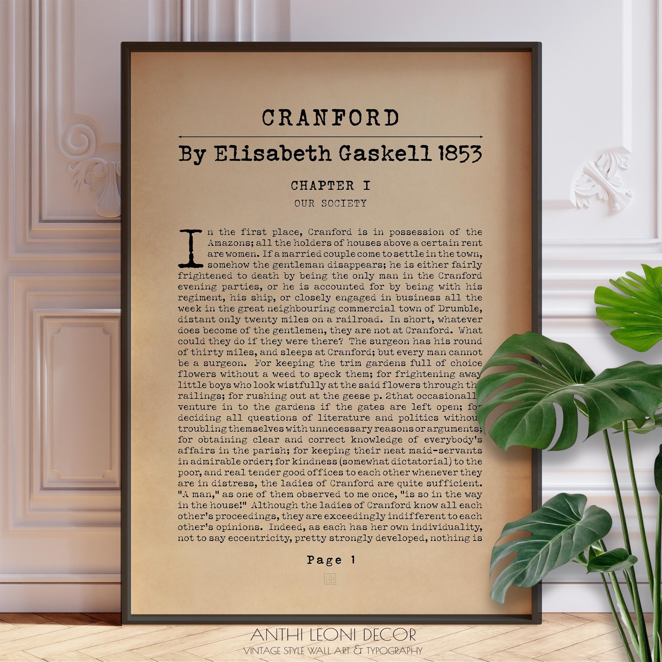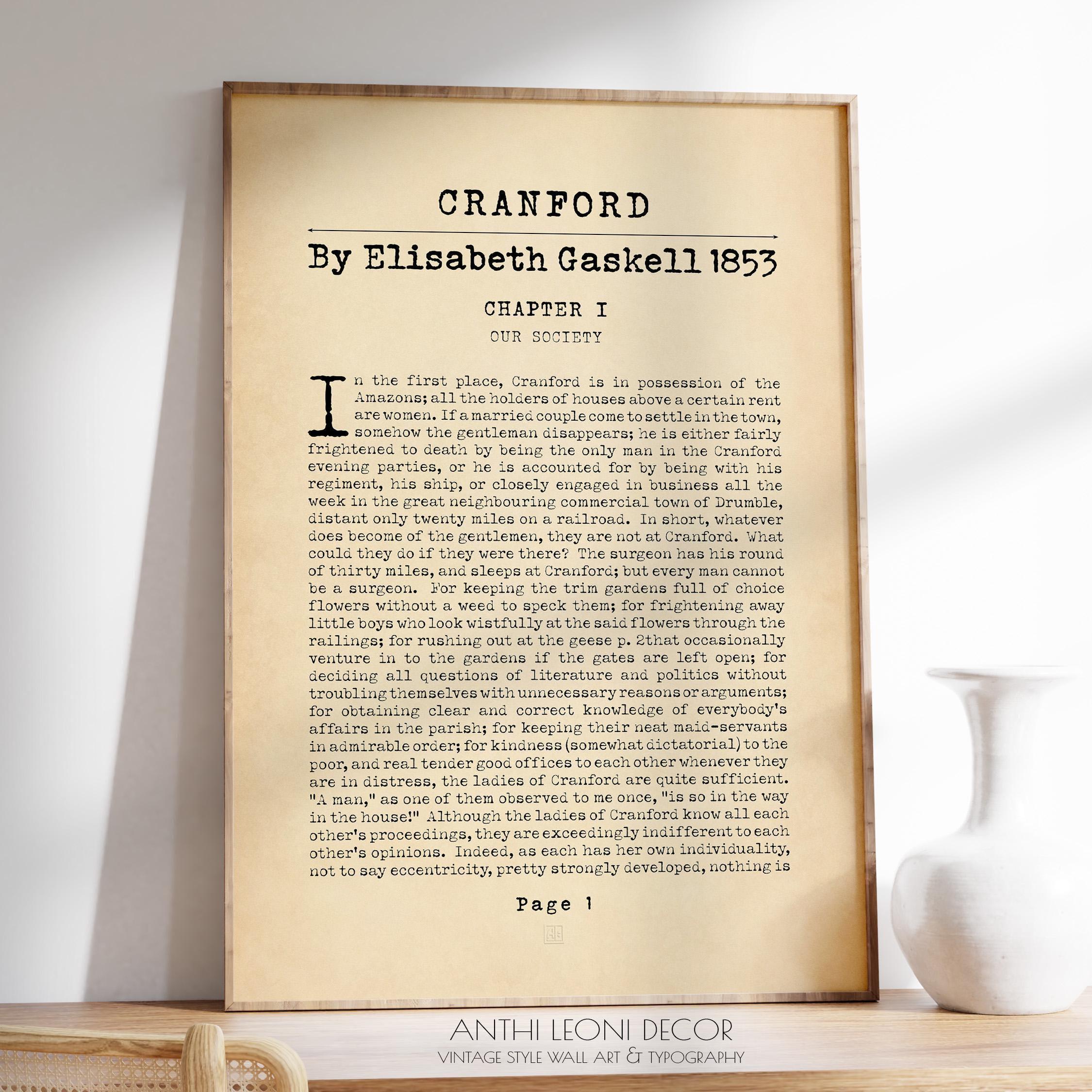 Cranford Print Elisabeth Gaskell Novel Poster Print Classic First Book Page Print Literary Wall Art Gift Idea | PRINTED Framed Options