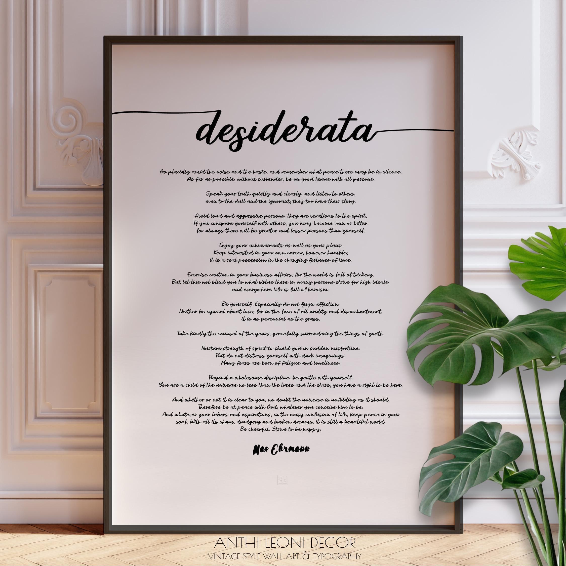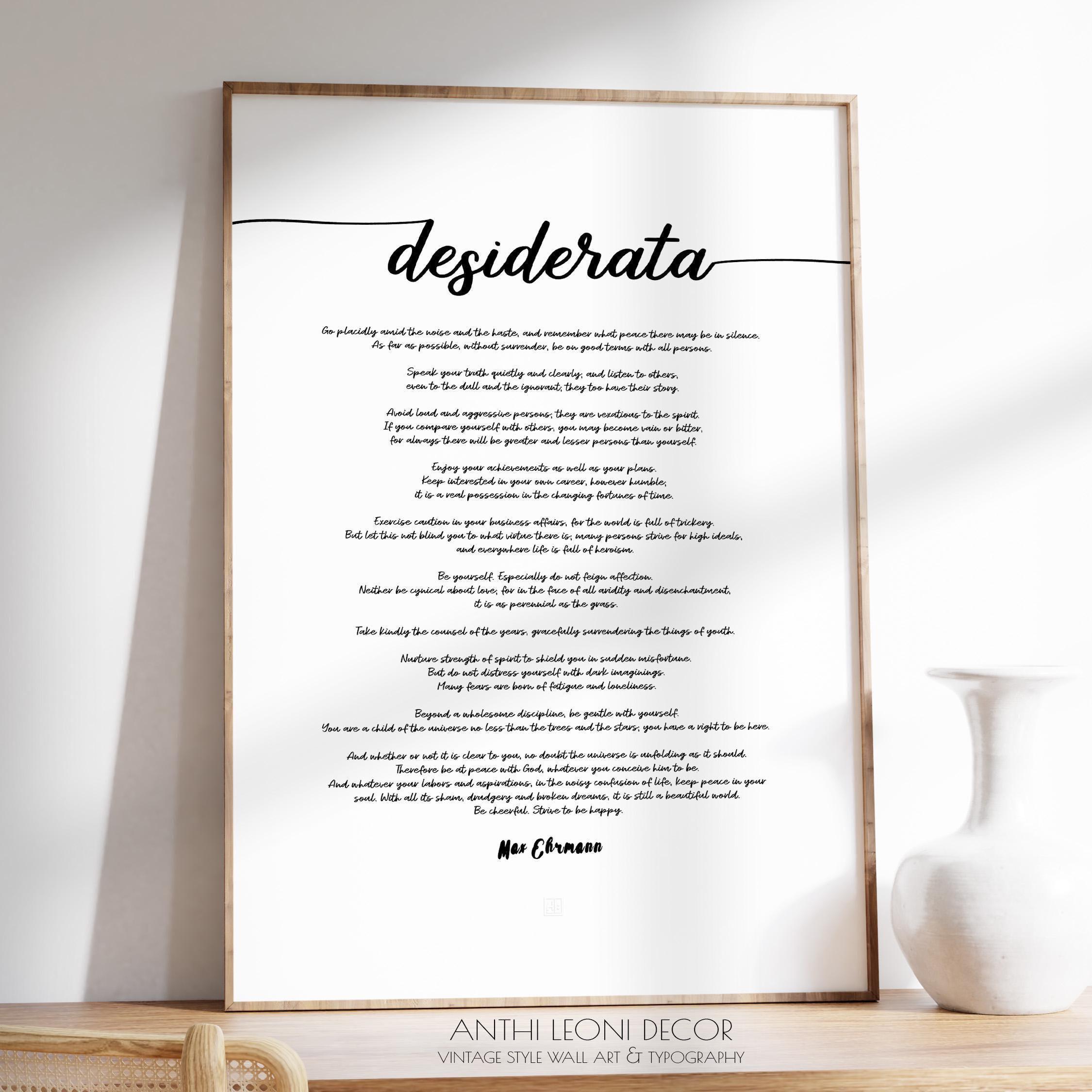 Desiderata print - Desiderata Poem - Max Ehrmann - Go Placidly Poem poster - Poem About Life - Happiness Poem - Contemporary script font poem - Peace and Harmony Poem - Graduation Gift - Anthi Leoni Decor Poetry Wall Art for all occasions.