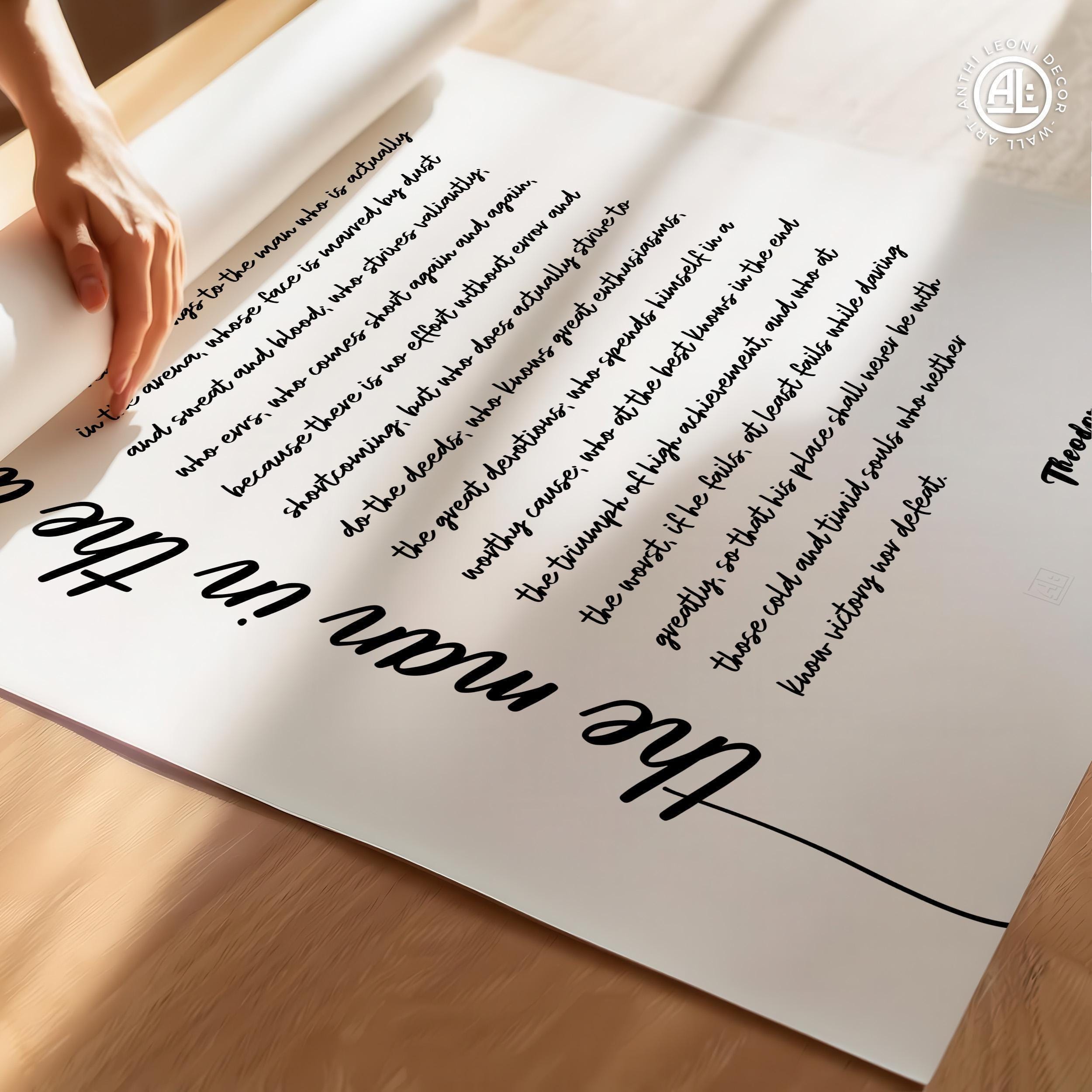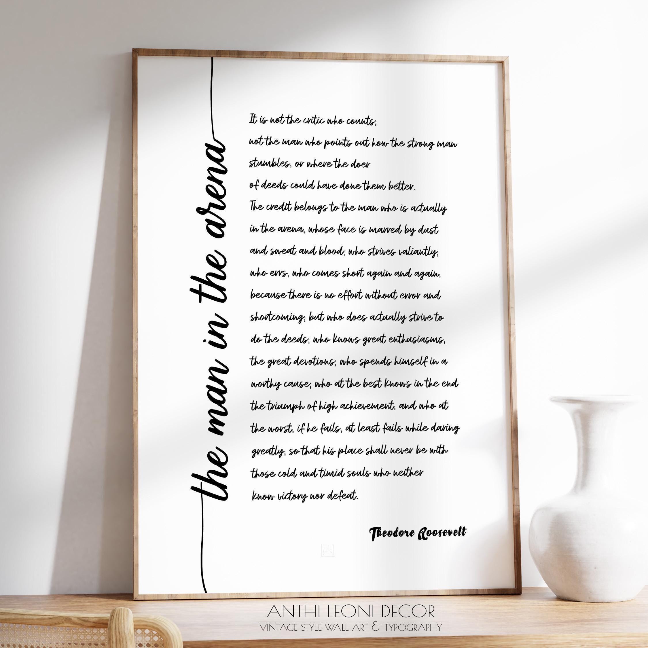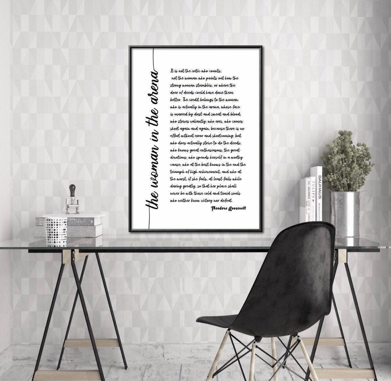 Woman in the Arena Poster Print (Script) – Theodore Roosevelt Quote, Daring Greatly, Office Wall Art