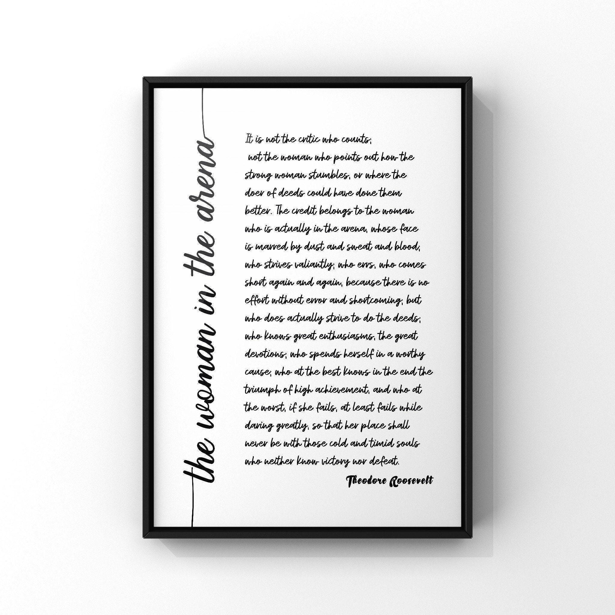Woman in the Arena Poster Print (Script) – Theodore Roosevelt Quote, Motivational Wall Art, Framed or Unframed Gift