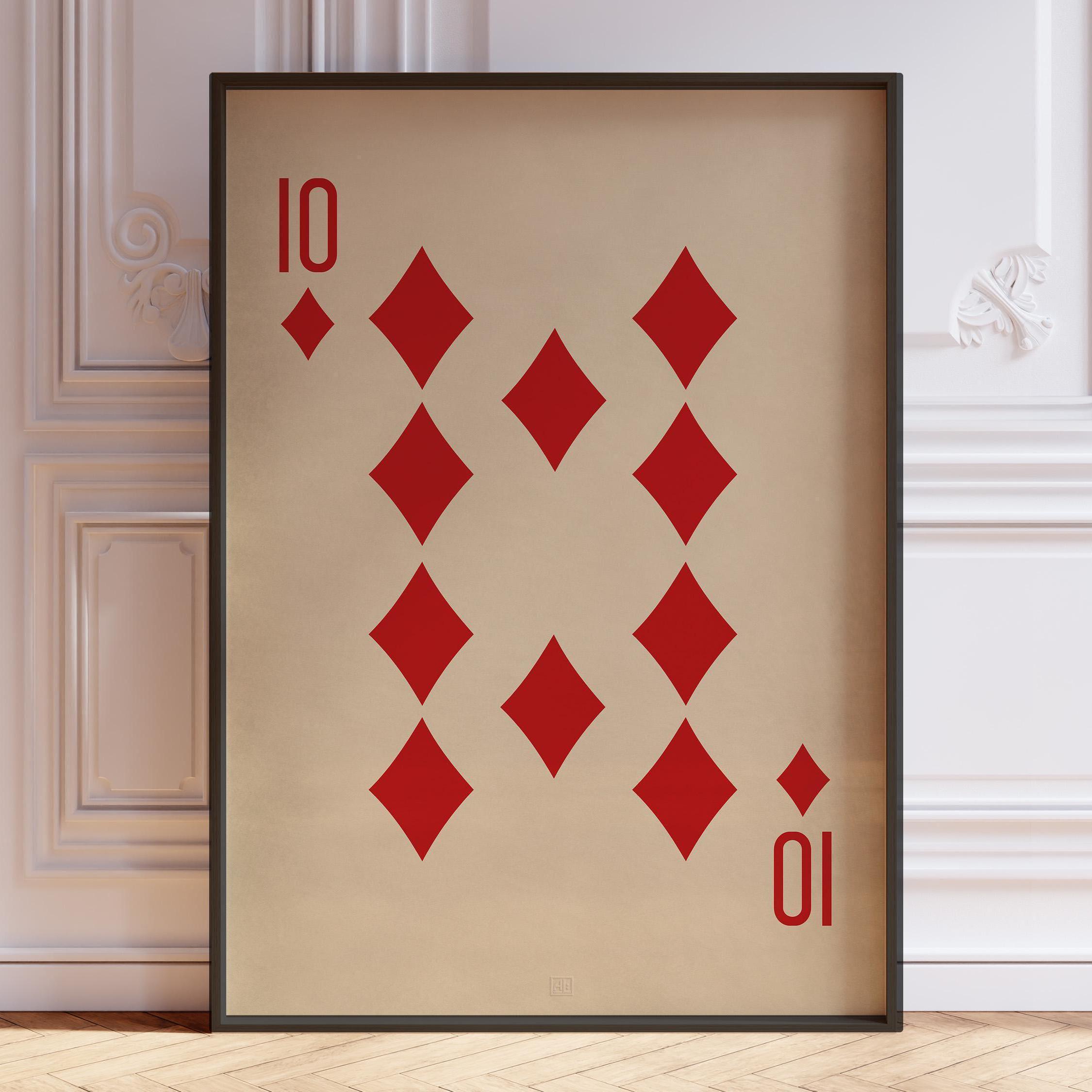 POSTER PRINT - Vintage Ten of Diamonds Playing Card Poster, Ten Of Diamonds Poster Print, Vintage Playing Cards Wall Art Print, Red Card Deck Print, Ten Diamonds Wall Decor, 10 Playing Card Print.
