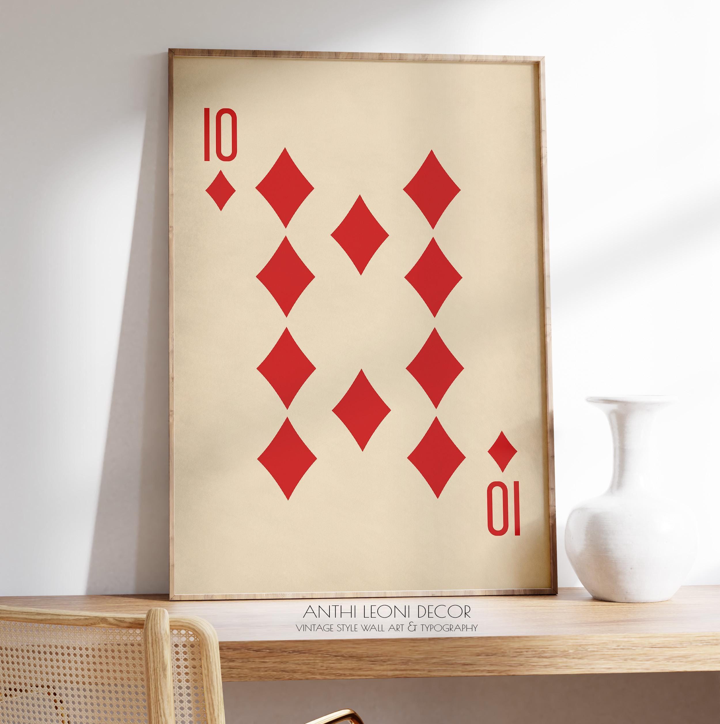 Ten Of Diamonds Poster Print, Vintage Playing Cards Wall Art Print, Red Card Deck Print, Ten Diamonds Wall Decor | PRINTED