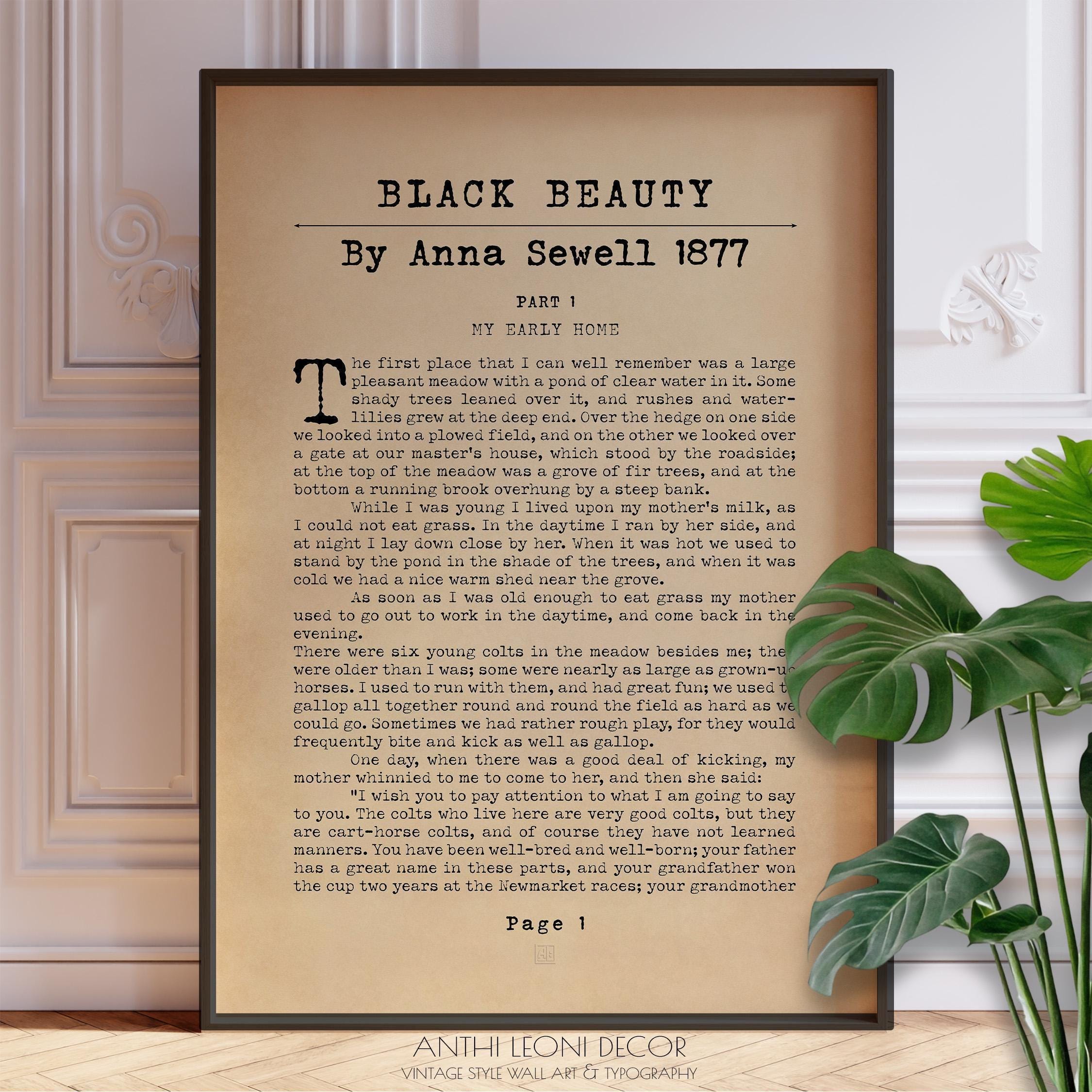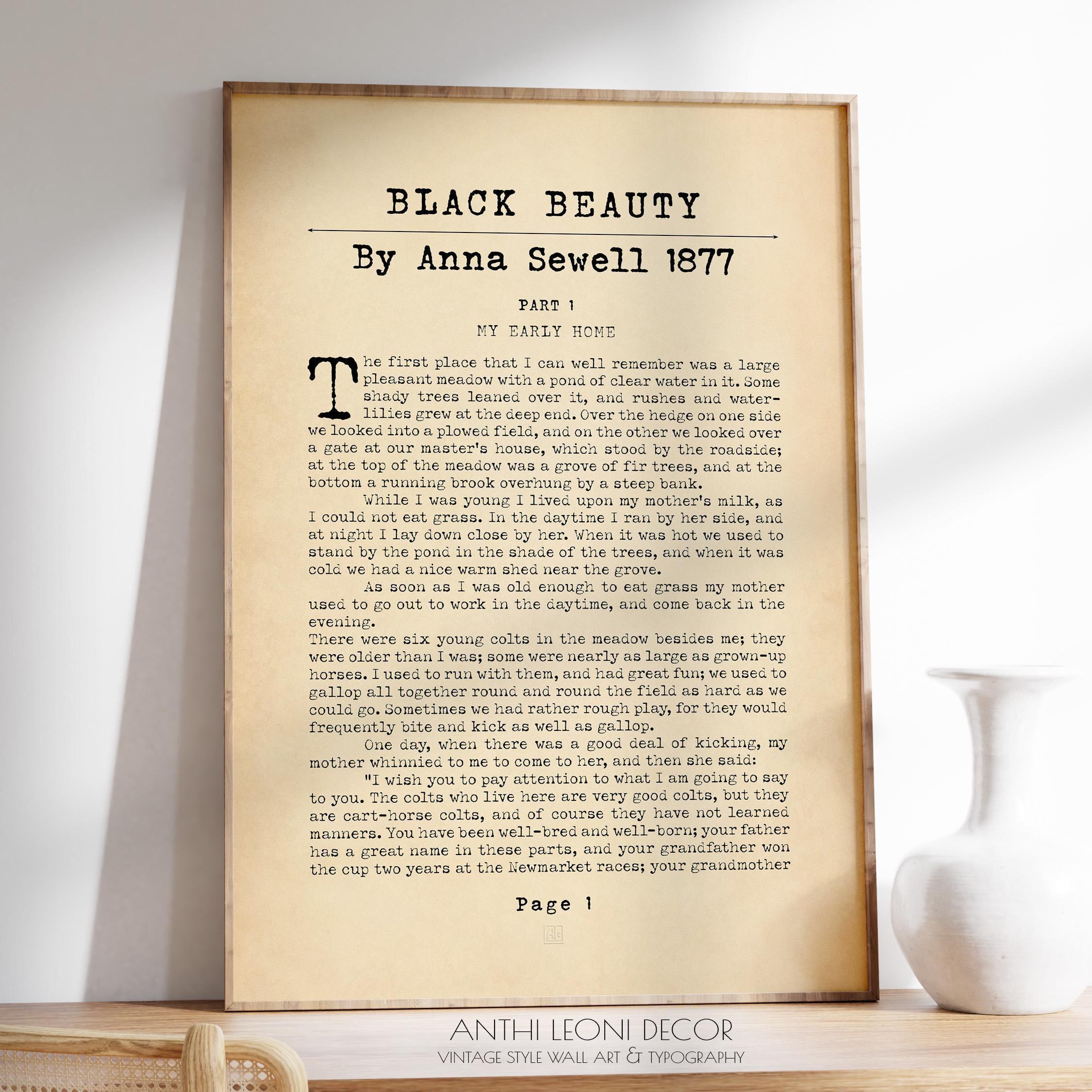 🔍 Black Beauty art print, Anna Sewell quote, horse book wall art, equestrian literature print, vintage book page poster, classic novel typography, rustic horse lover gift, book opening page print, literary wall art, antique novel poster, Victorian book decor, farmhouse reading nook print, bookish home decor, countryside quote print, teacher gift idea, nostalgic literature art, framed horse print, animal story wall art, rustic equestrian decor, vintage horse book gift