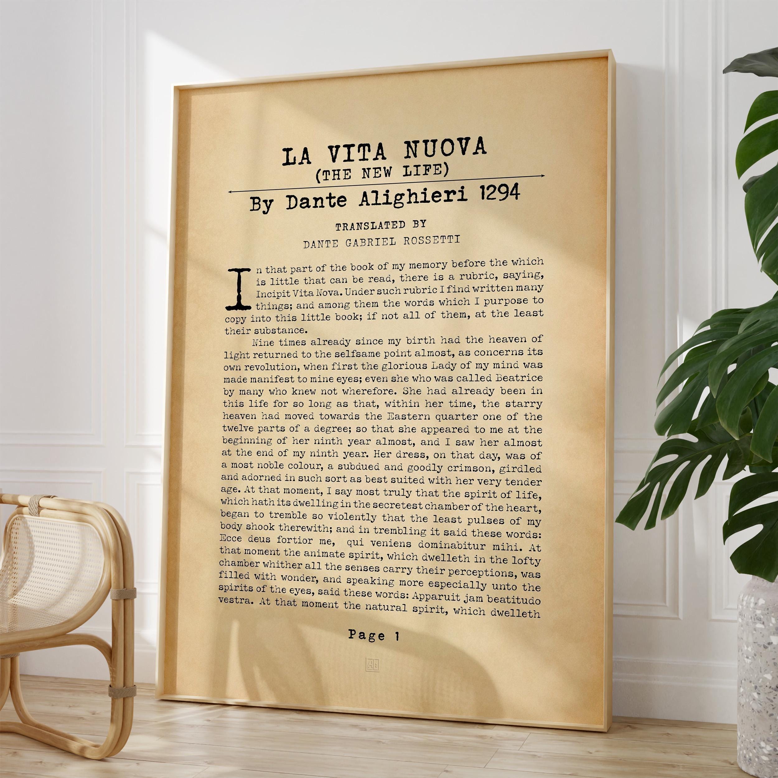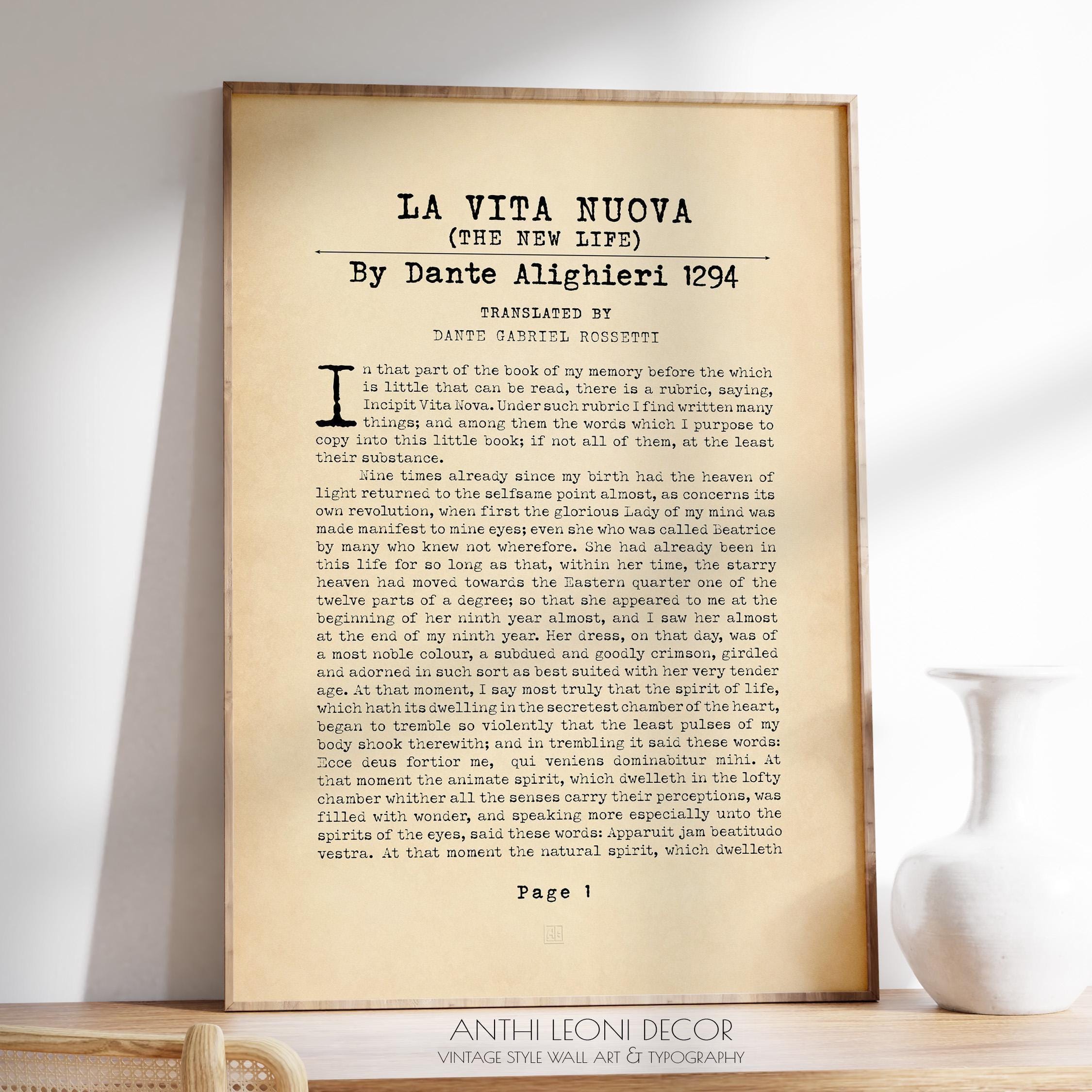 La Vita Nuova by Dante Alighieri The New Life Book Page Print | First Chapter Page Poster | Typography Textual Art | PRINTED