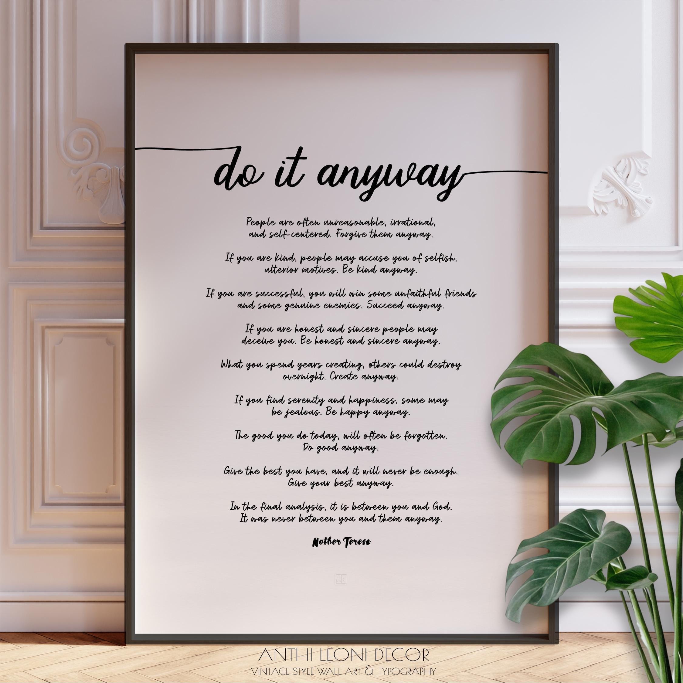Item arrived as described and the quote is one of my favourites printed on top quality paper. Arrived roll wrapped so it didn’t crease. I’ve put it in a white frame and it looks beautiful. Fast delivery from the seller. Thank you so much ☺️
