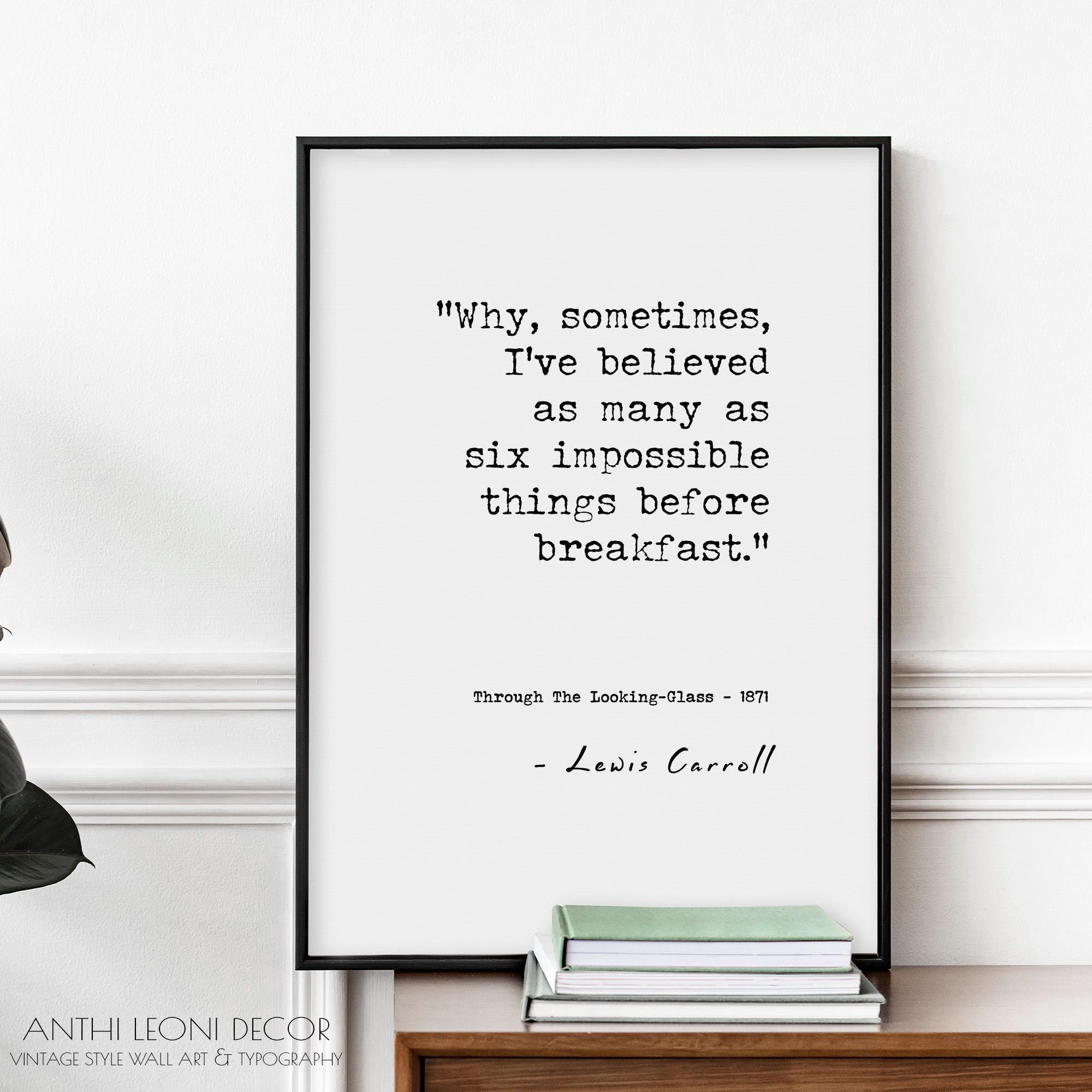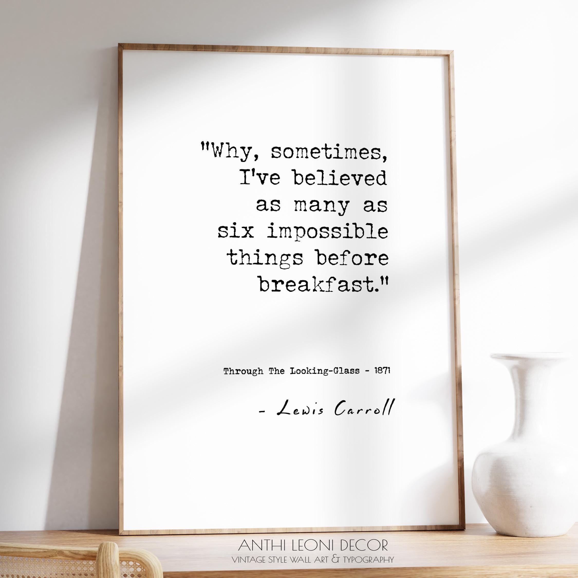 Alice Through the Looking-Glass Print - Lewis Carroll Decor - Why Sometimes I've Believed As Many As Six Impossible Things Before Breakfast Quote - Alice Wall Art - Bookish Decor- Reading Nook Poster - Quotes About Life - Wall decor for all occasions.
