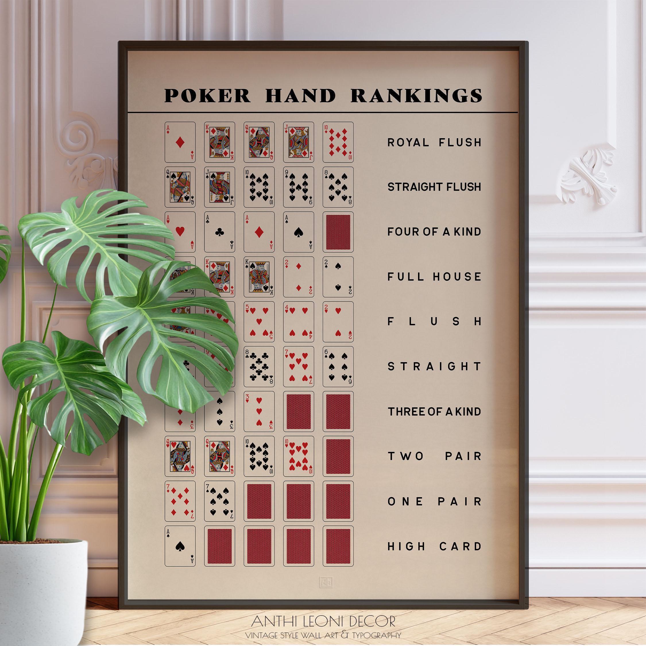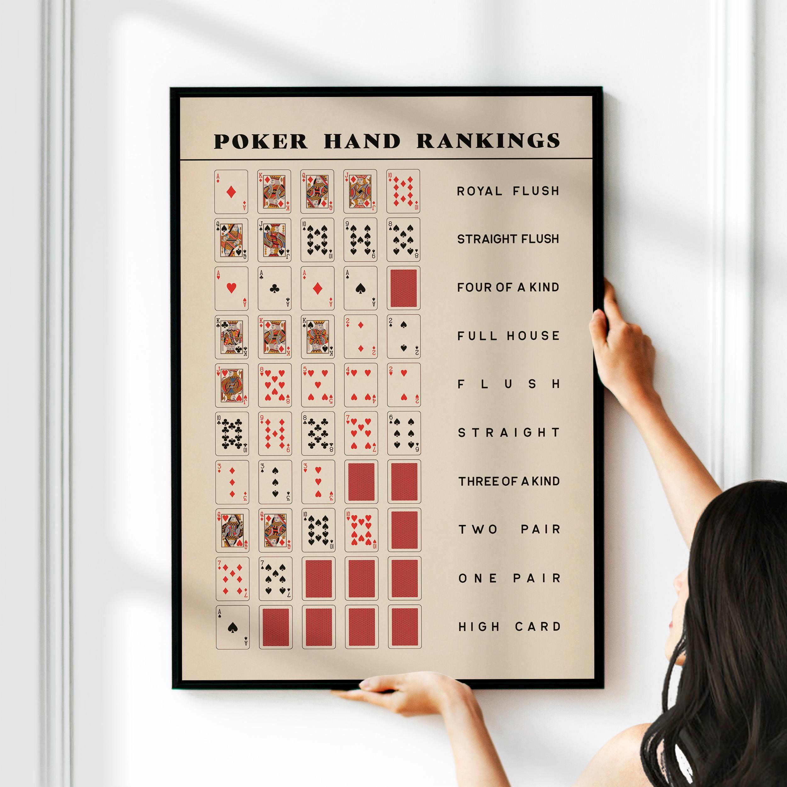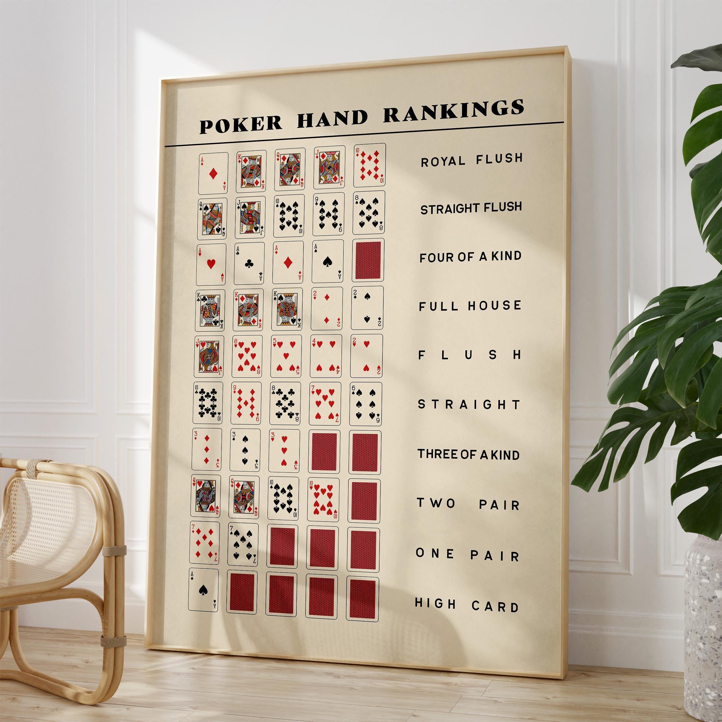 Poker Player Gift - Poker Poster Wall Art - Poker Hand Print - Texas Holdem Poker Rankings Guide - Poker Gift | PRINTED