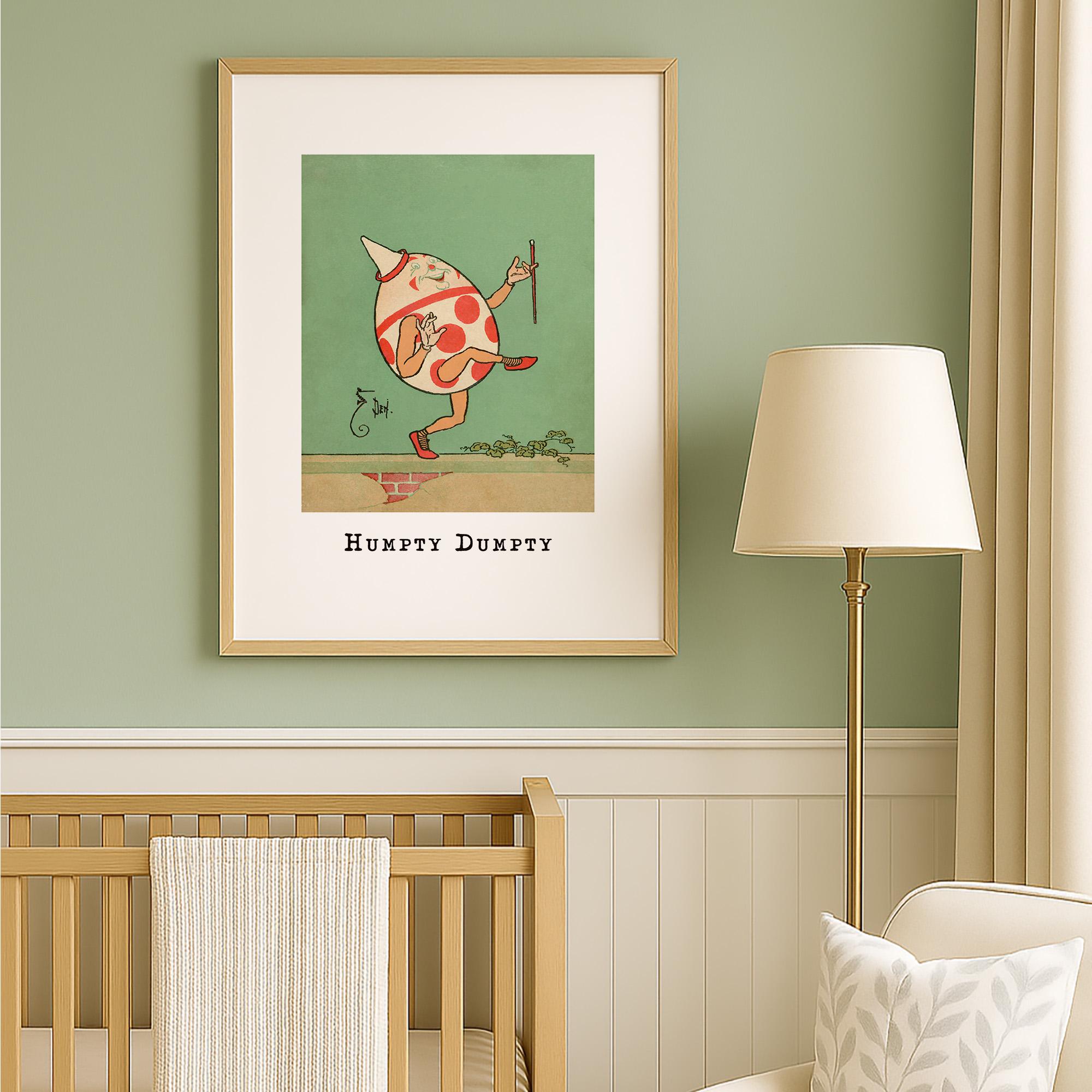 Nursery room decor, Humpty Dumpty Nursery Rhyme Print, Nursery Wall Art Poster, Baby Room Wall Art | PRINTED