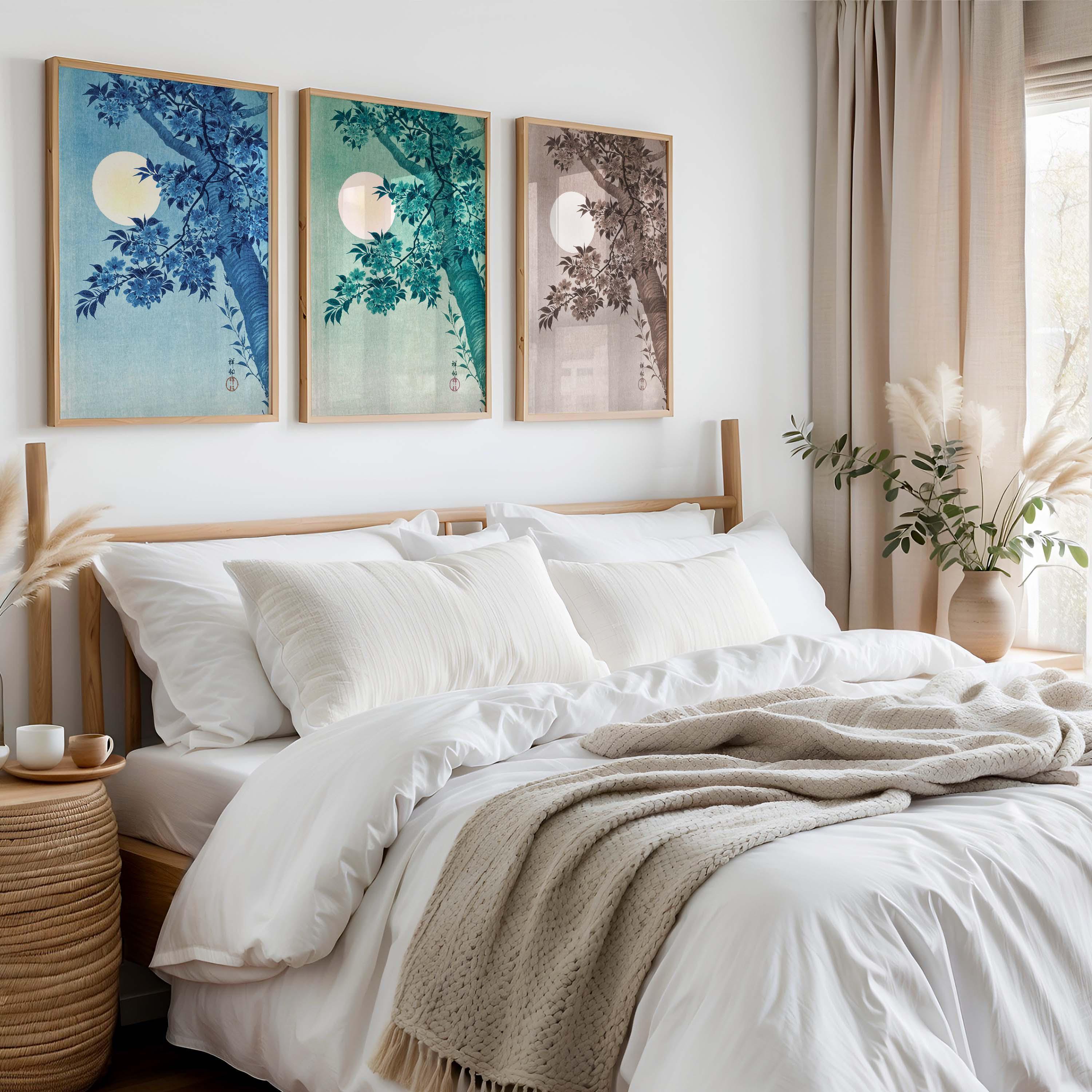 🔍 blue japandi wall art, japanese cherry blossom print, moon and tree poster, ohara koson artwork, japandi style decor, soft blue wall art, minimalist japanese print, zen moonlight art, cherry blossom tree art, japandi bedroom print, japanese art wall decor, moon poster with branches, serene floral wall print, boho japandi artwork, japanese wabi sabi wall art, calming blue poster, full moon cherry tree art, traditional japanese remaster, cherry blossom japandi print, modern zen wall decor