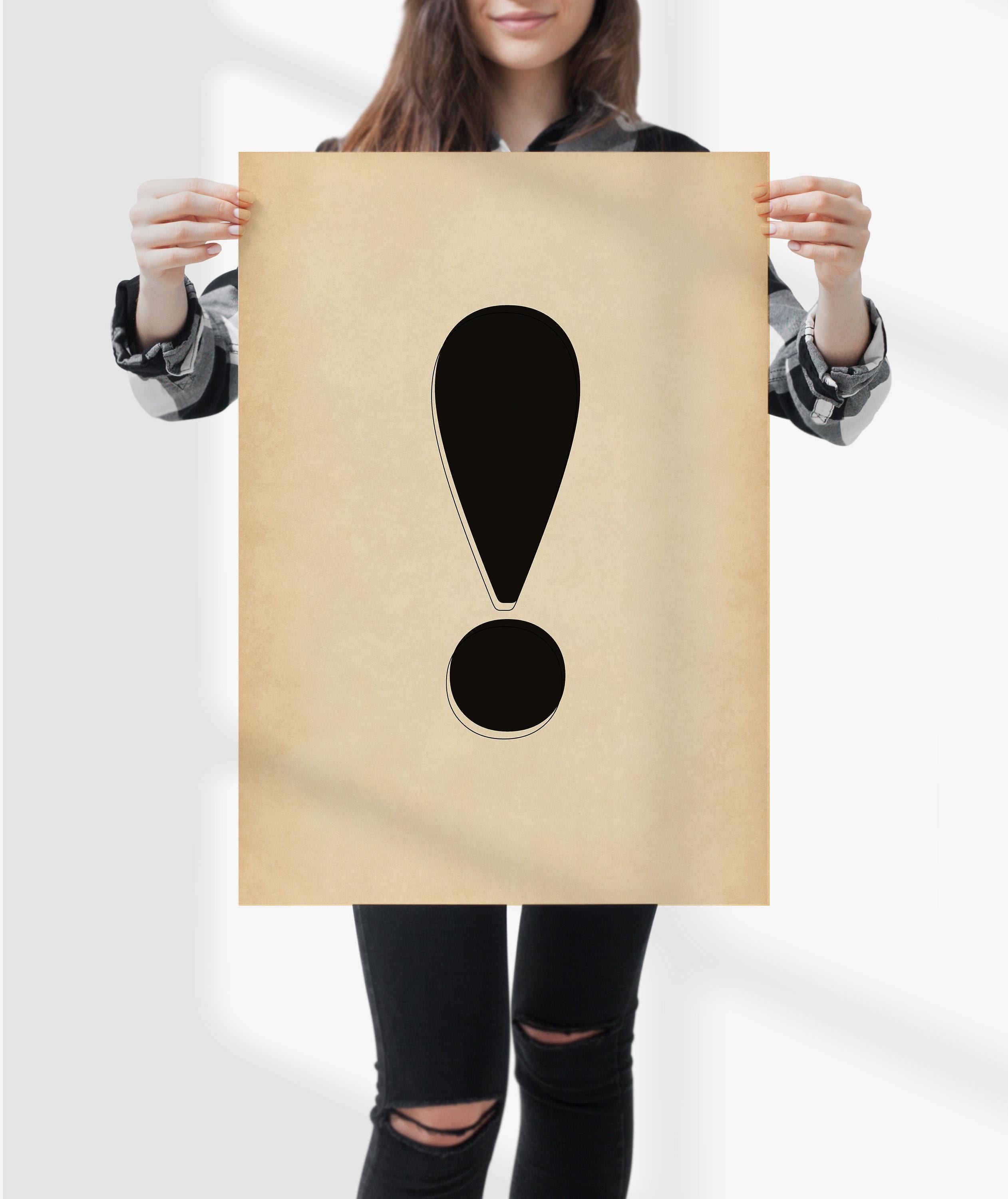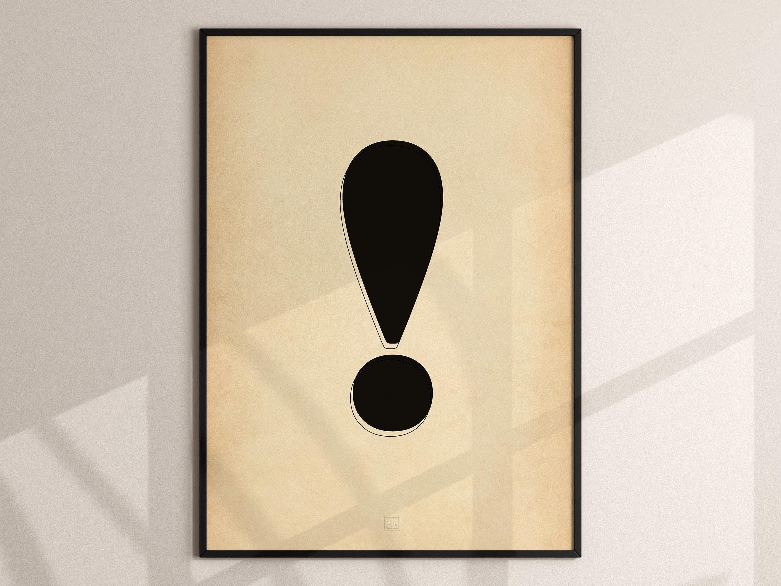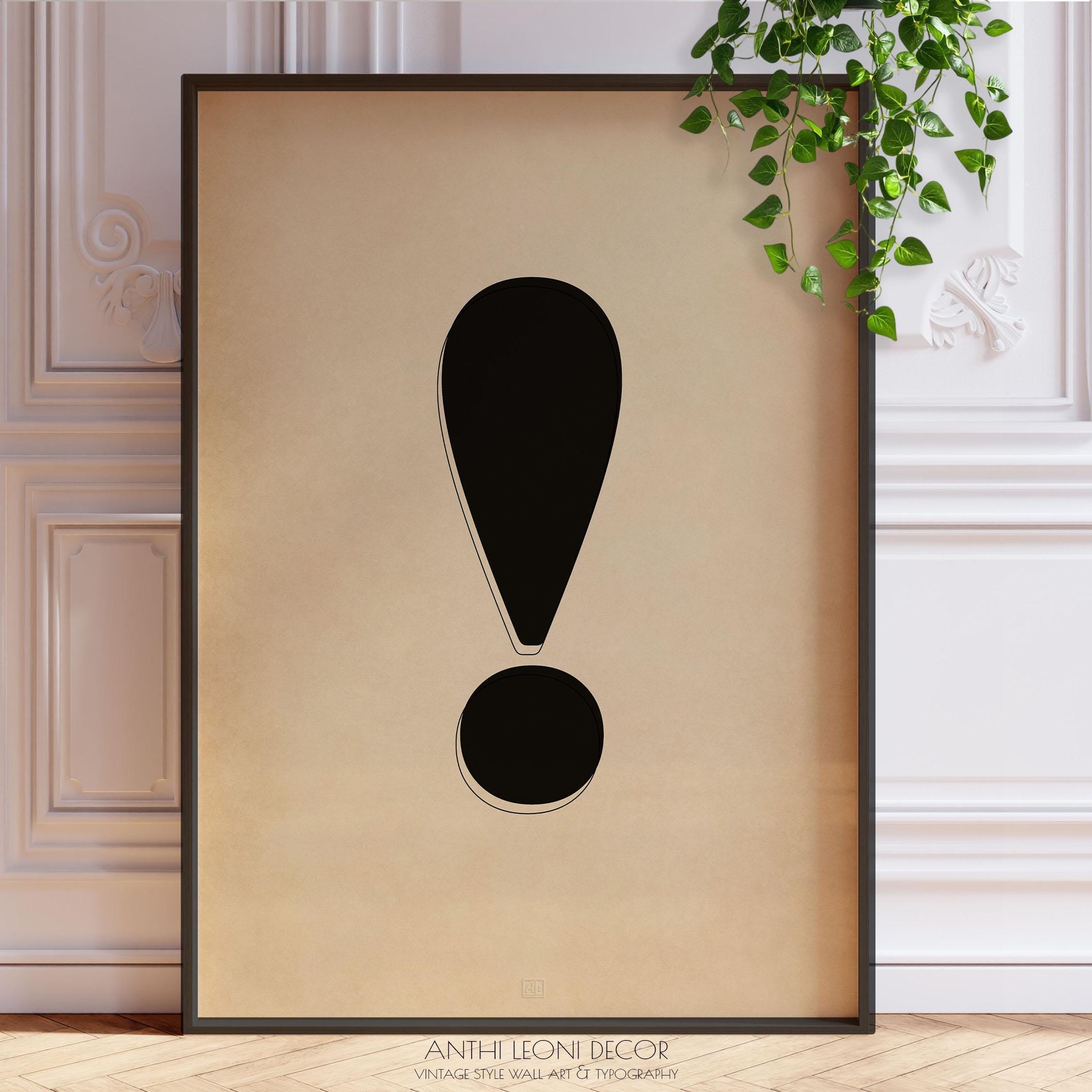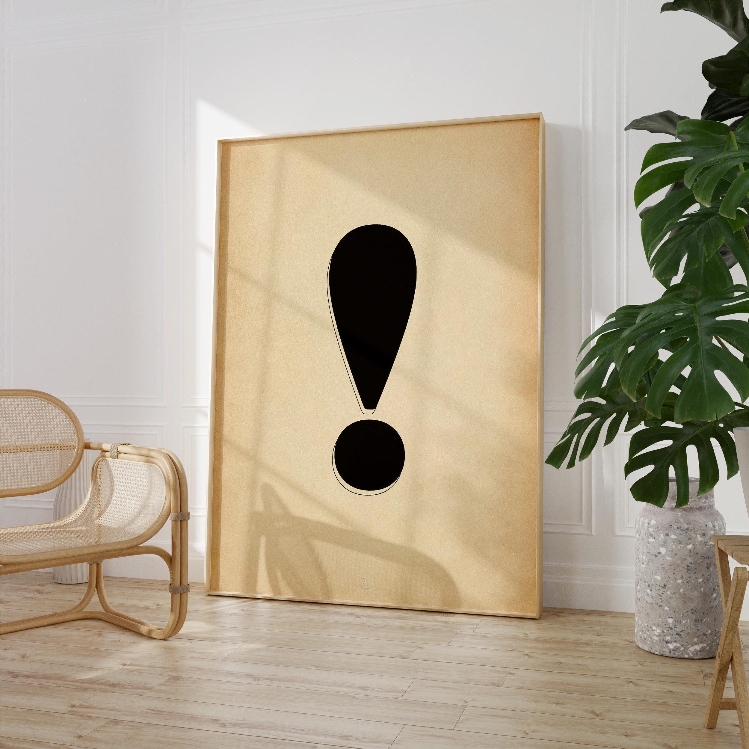 Make a confident statement with this striking exclamation mark artwork—graphic, minimalist and effortlessly chic. Remastered in crisp black with warm vintage tones, it brings design-led intrigue to bookish interiors, modern classic rooms and Scandi spaces. Perfect for a home office, study, hallway or creative studio, this black and white typography poster also makes a witty gift for writers, editors and designers, and layers beautifully into a curated gallery wall.
