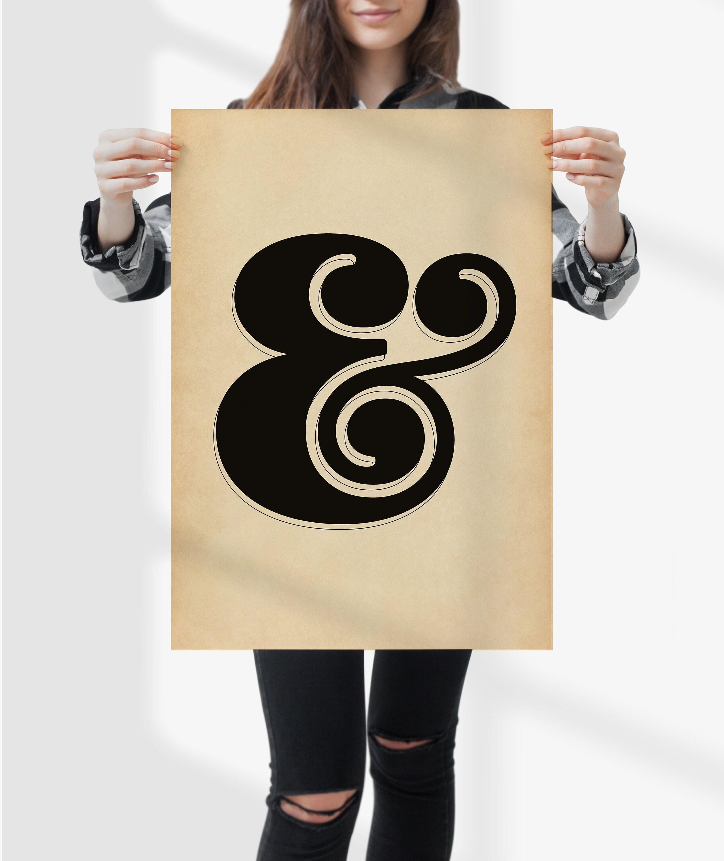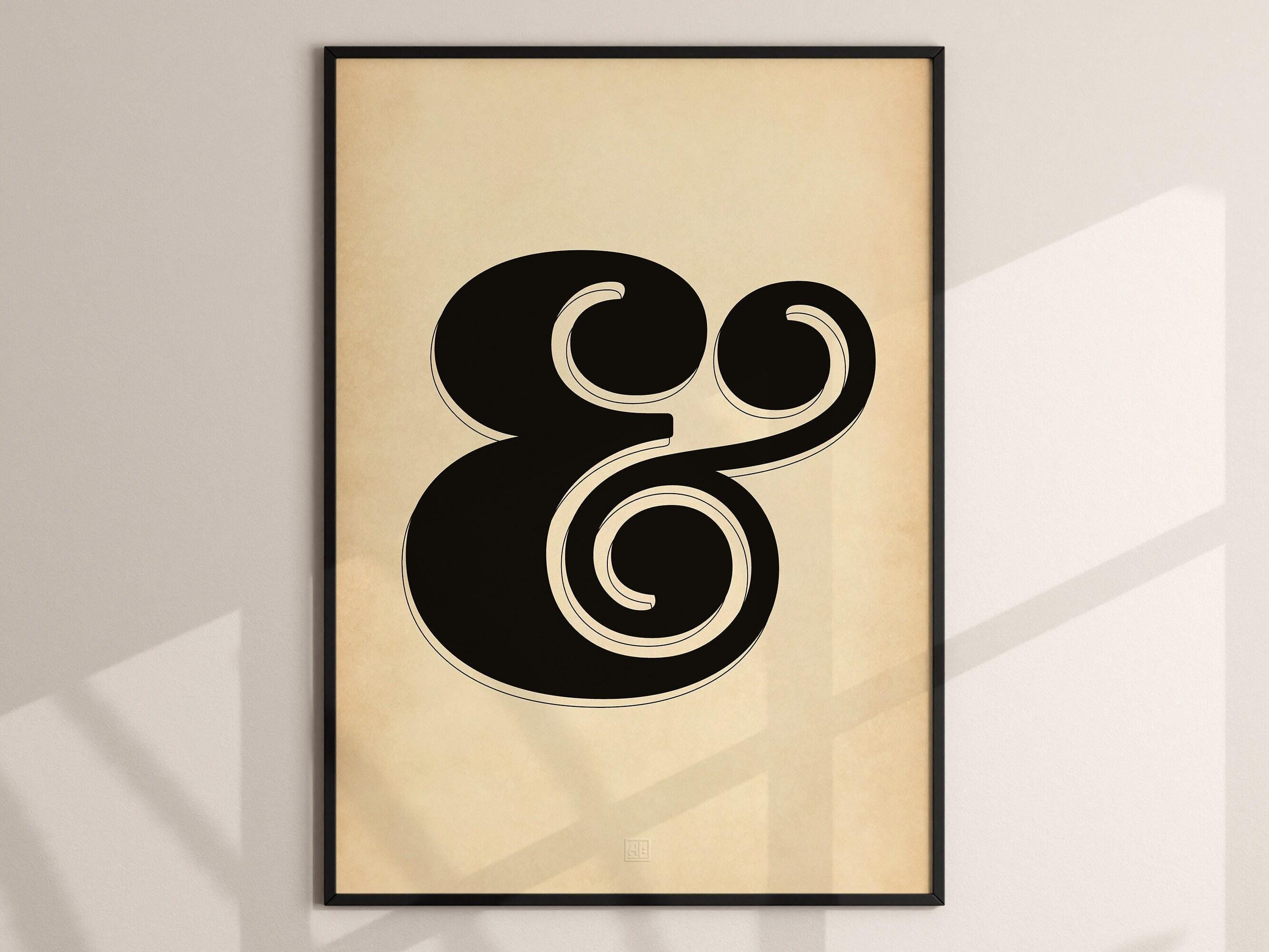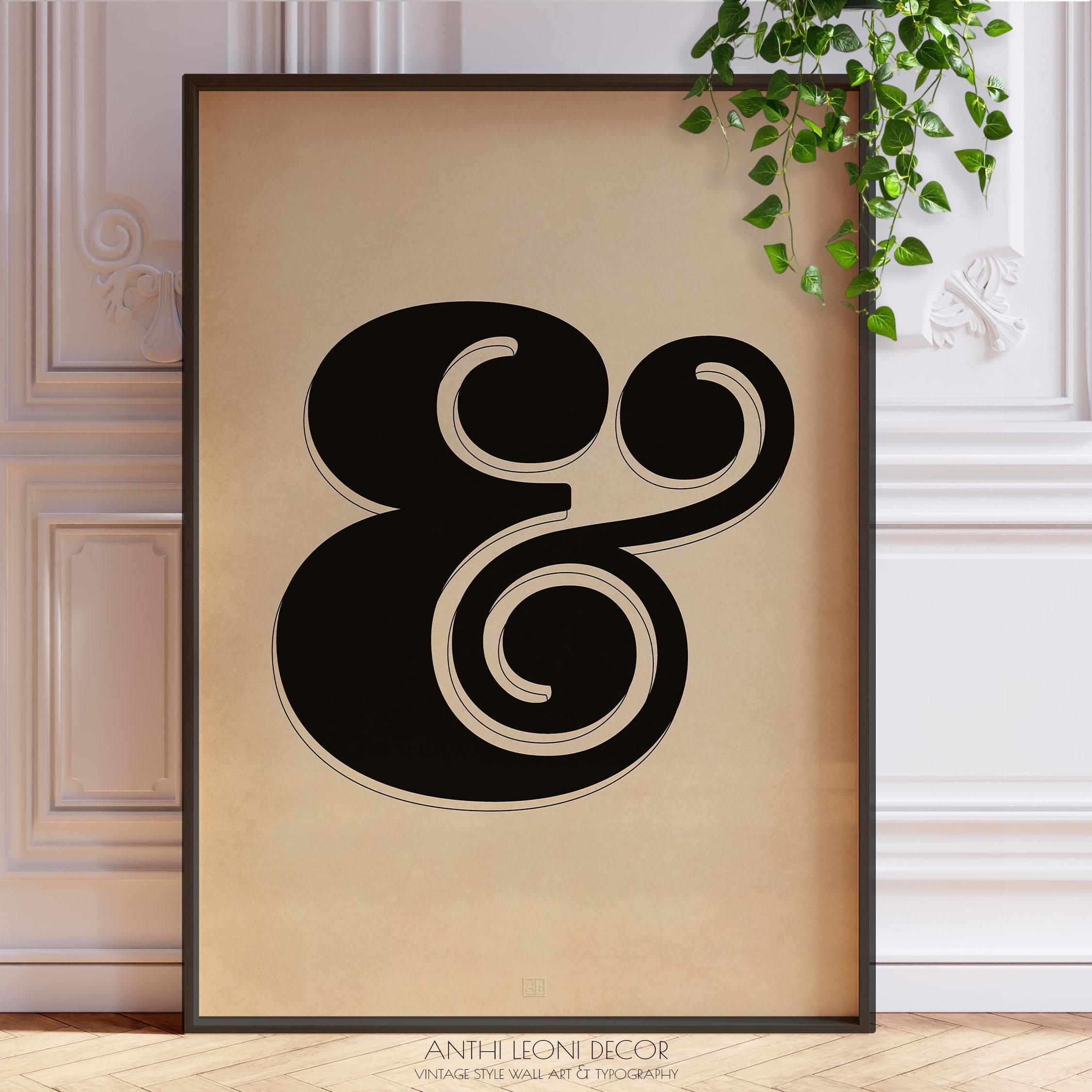 Ampersand (“&”) print for offices, studios and gallery walls—bold vintage typography in rich black on a softly aged, parchment-style ground; available as ready-to-hang framed prints or as unframed prints to style your way.