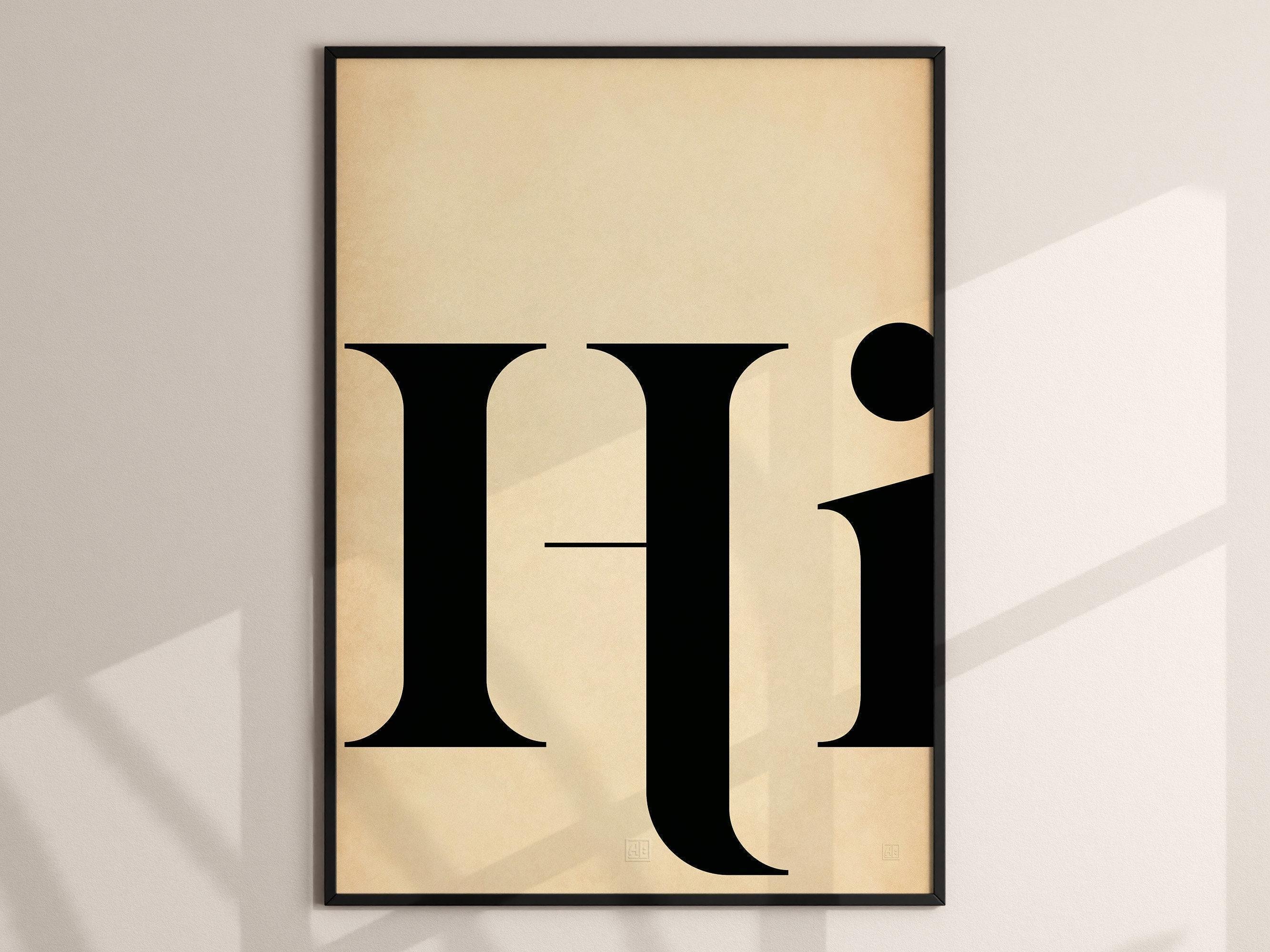 Hi typography print for foyers, hallways and entryways—bold vintage “Hi” poster, available as ready-to-hang framed prints or as unframed prints to style your way.