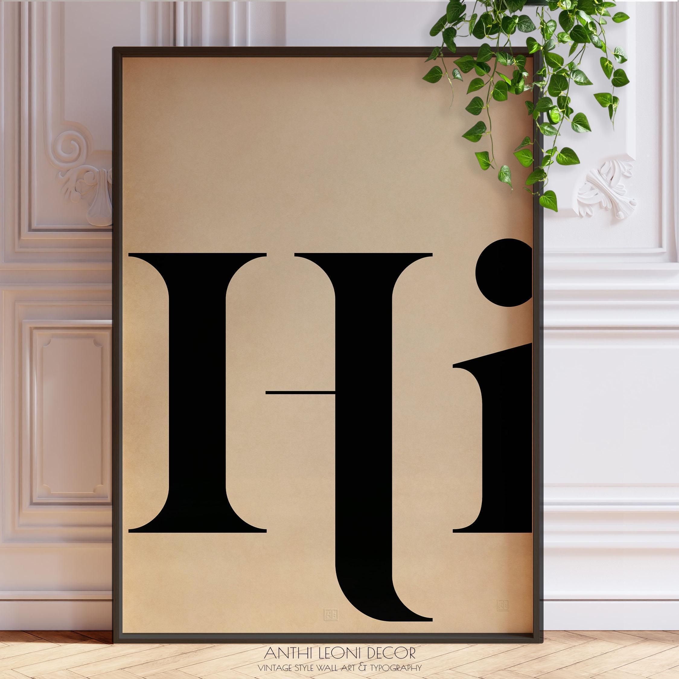 Make a friendly first impression with this striking “Hi” artwork, set in classic black typography on a softly aged, parchment-style background. Its clean, retro look suits modern classic, Scandi and bookish interiors, bringing instant welcome to a hallway, foyer or mudroom. A lovely new-home or housewarming gift, it layers beautifully above a console table and pairs effortlessly with gallery wall pieces and family photos.