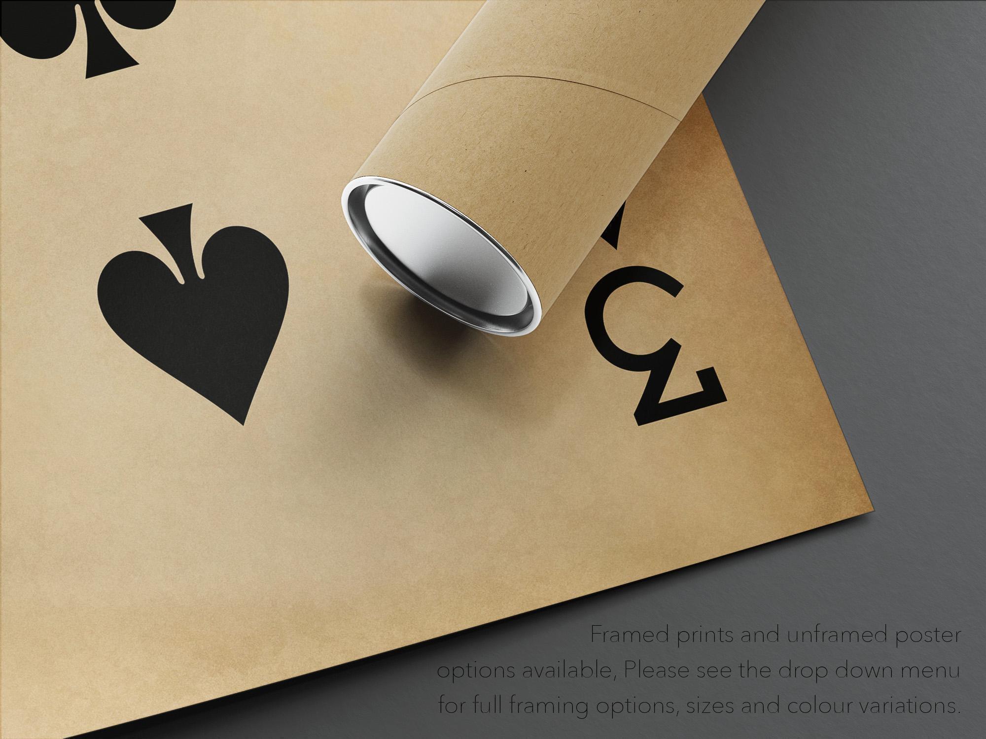 Playing card posters are a chic and sophisticated option for enhancing your wall decor, infusing elegance and charm into any room. Drawing inspiration from timeless games such as poker and bridge, these posters exude a sense of nostalgic luxury that elevates the ambiance of any space. Not only do they serve as visually stunning pieces, but they also fill bare walls with intricate designs and vibrant colours that seamlessly complement any interior aesthetic. Affordable and adaptable, playing card posters make for exceptional gifts and serve as a striking focal point in any home, injecting your living space with character and artistic flair.