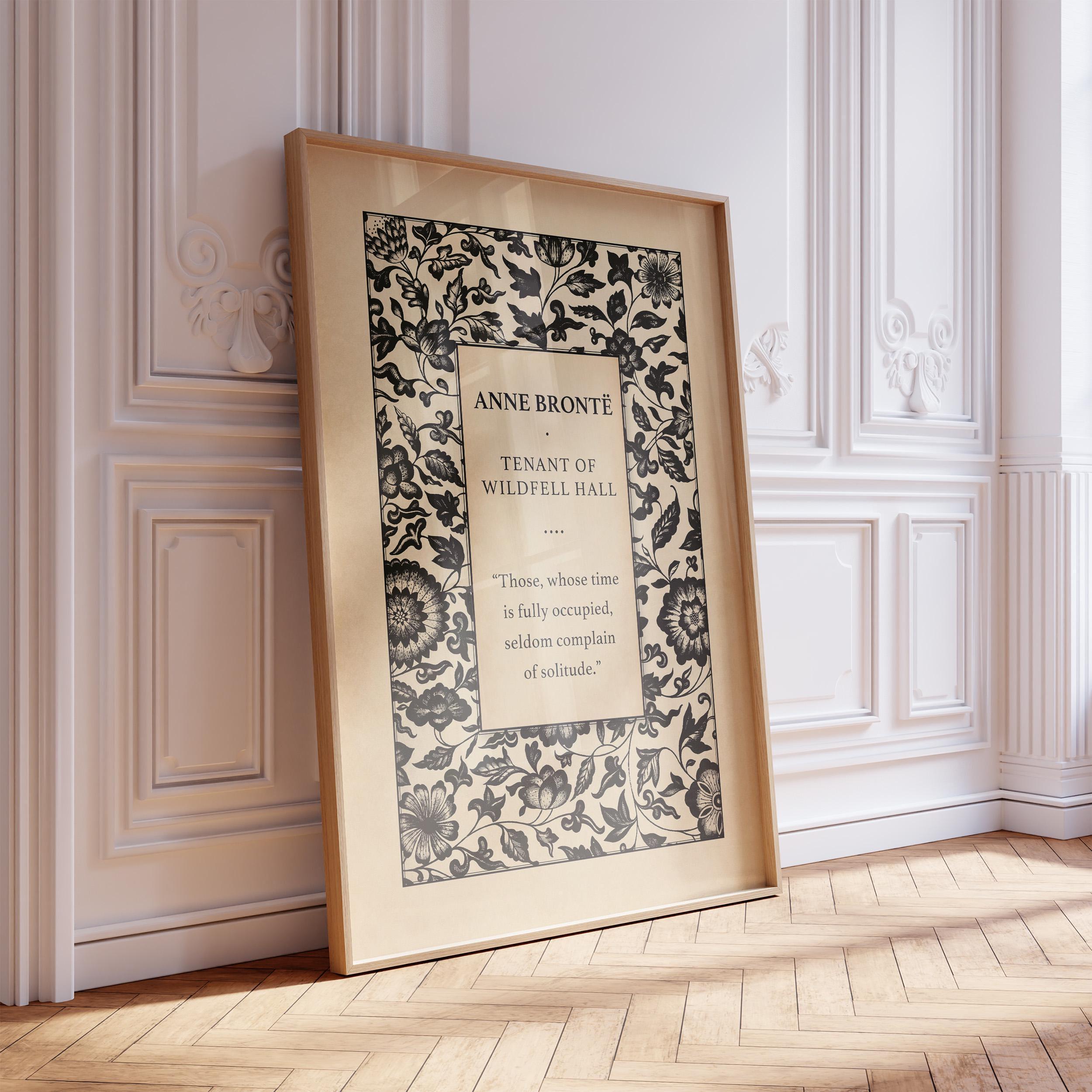 Celebrate the quiet strength and introspective brilliance of Anne Brontë with this refined book cover quote print from The Tenant of Wildfell Hall. Featuring the contemplative line: “Those whose time is fully occupied, seldom complain of solitude,” this elegant poster reflects Brontë’s timeless insight into resilience, purpose, and self-sufficiency.