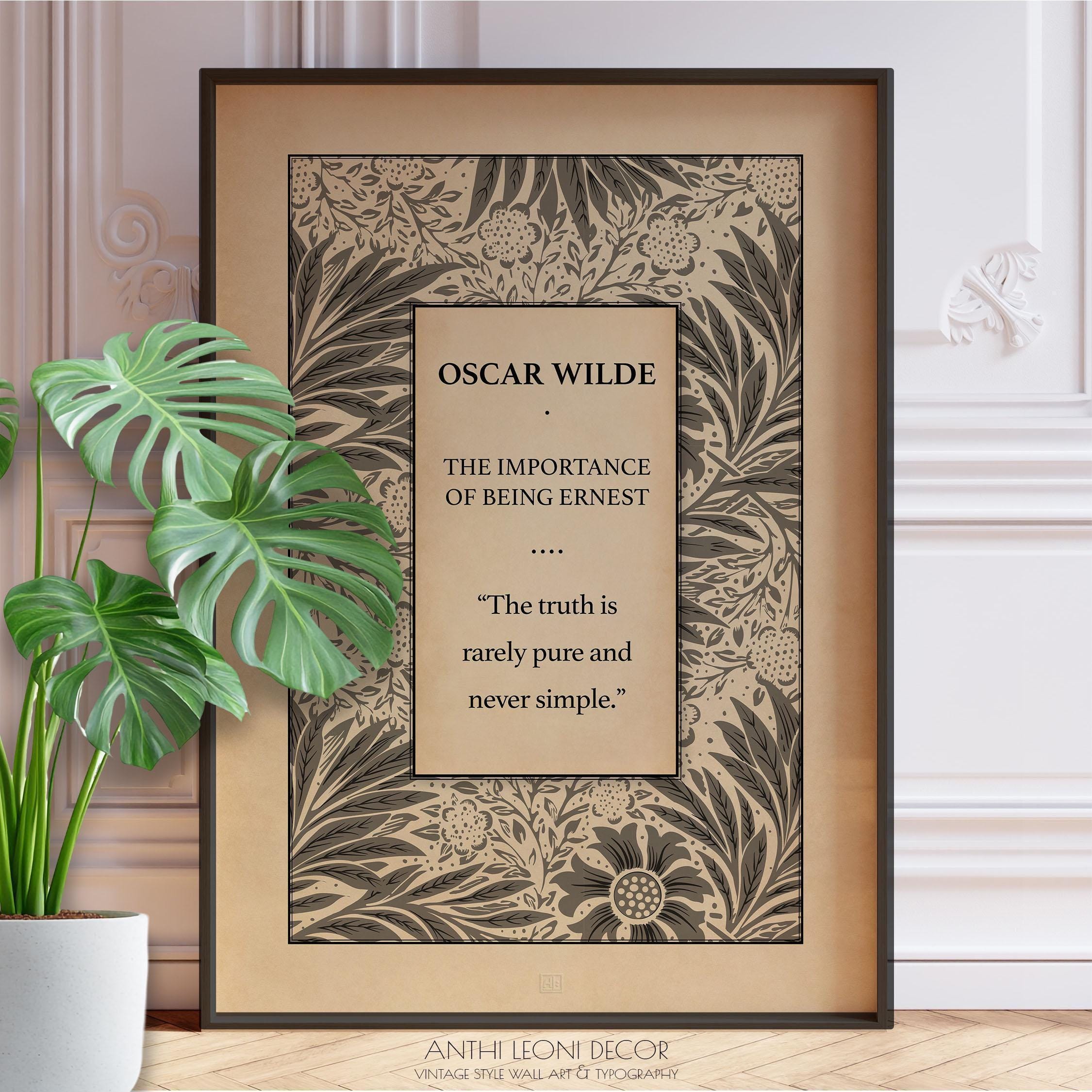 🔍 oscar wilde quote print, importance of being earnest quote, the truth is rarely pure poster, vintage theatre art print, literary wall decor, framed quote art, british satire poster, witty quote wall art, antique style book print, classic play quote, literary gift for readers, dramatic irony wall art, wilde quote for office, quote for actors, bookish wall print, victorian theatre decor, elegant typography art, book lover gift idea, writer’s room decor, quote from wilde