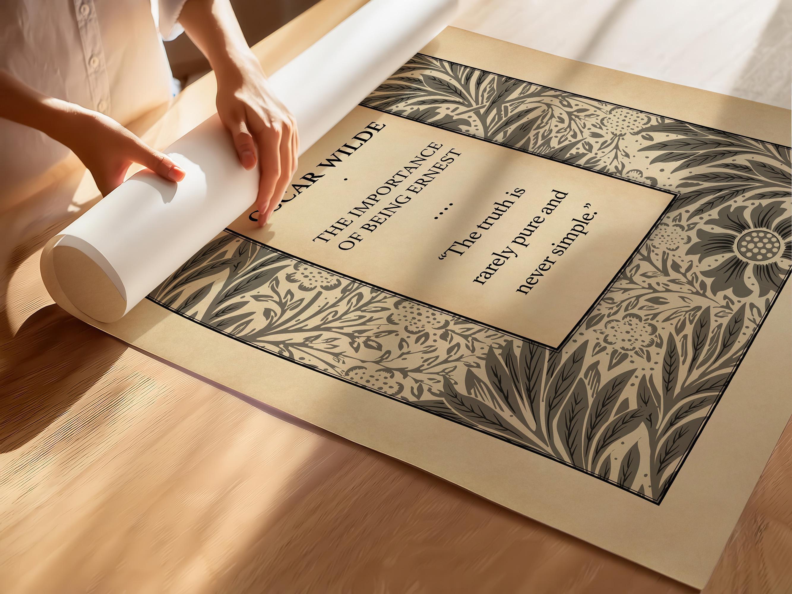 – Iconic Quote Print: Features the classic Oscar Wilde line from The Importance of Being Earnest