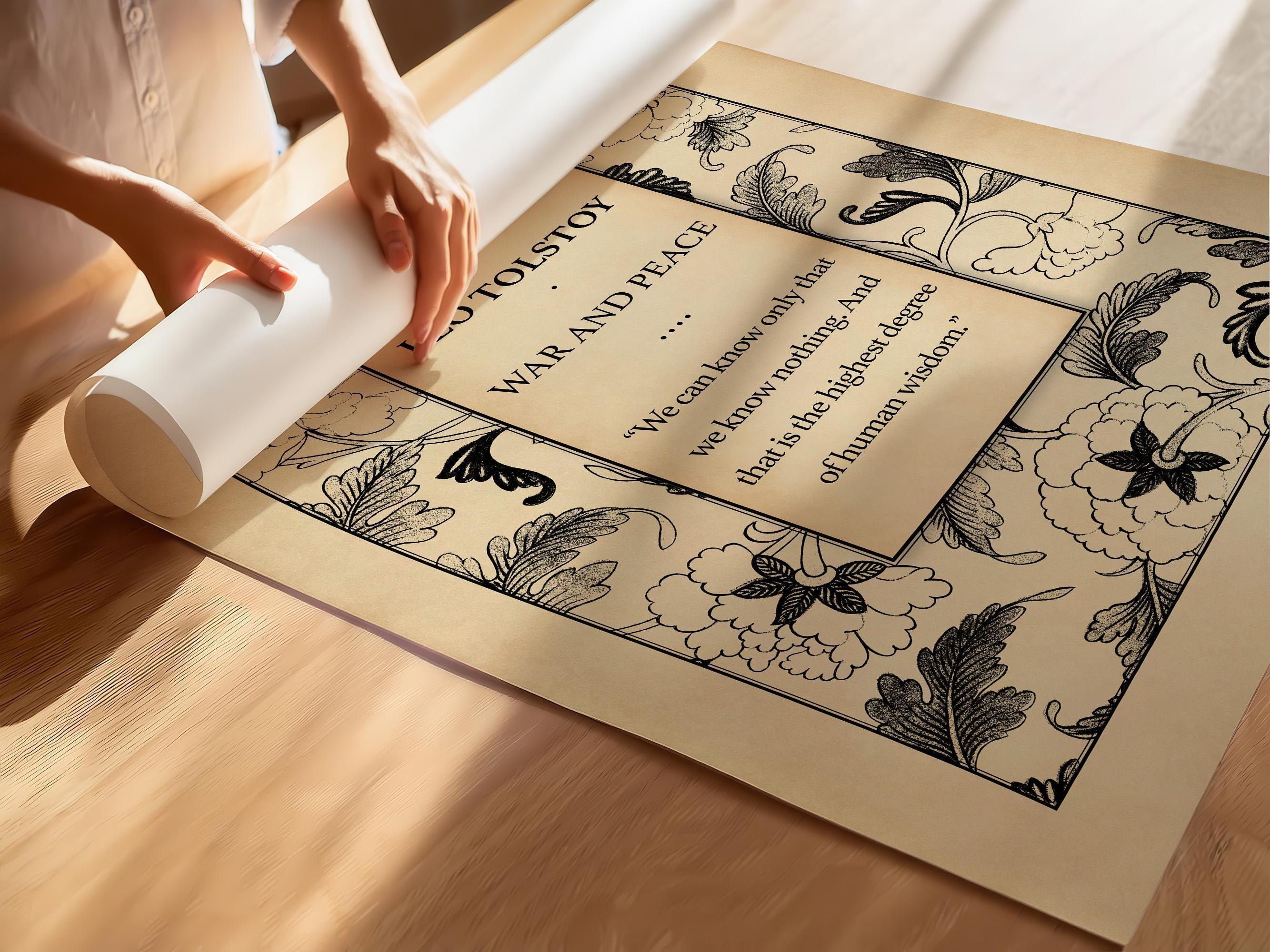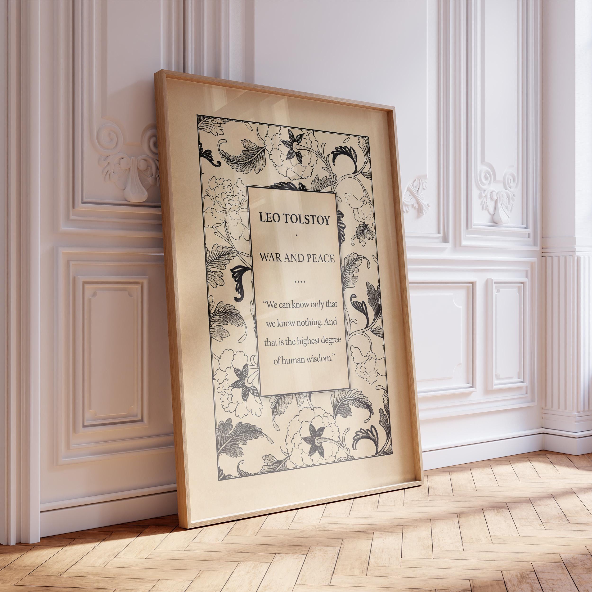 Contemplate the depth of human wisdom with this powerful literary quote print from War and Peace by Leo Tolstoy. Featuring the iconic line: “We can only know that we know nothing. And that's the highest degree of human wisdom,” this elegant poster captures the philosophical heart of one of literature’s greatest masterpieces.