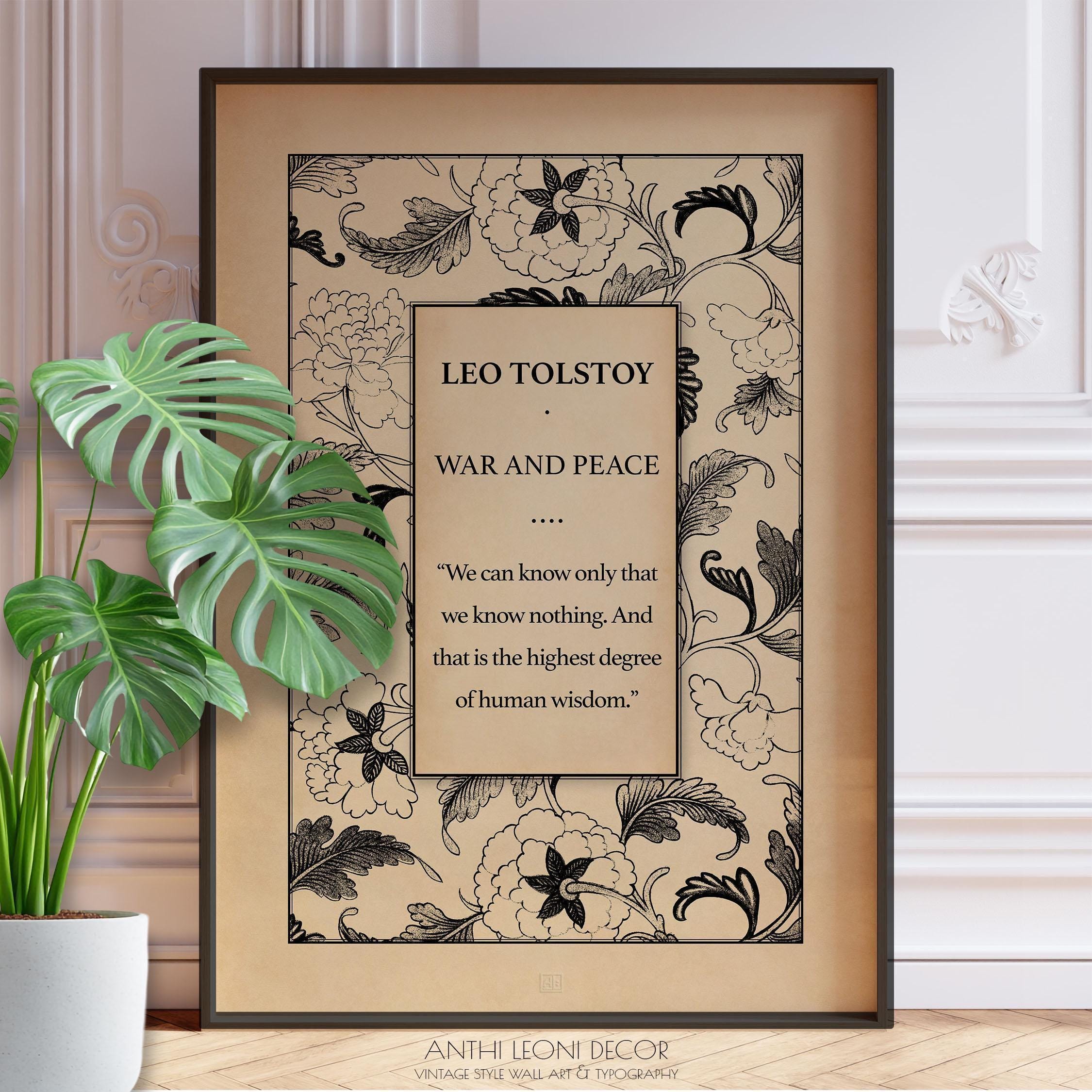 War and Peace Quote Print – Leo Tolstoy Poster, We can only know that we know nothing, Literary Wall Art, Vintage Decor, Framed or Unframed