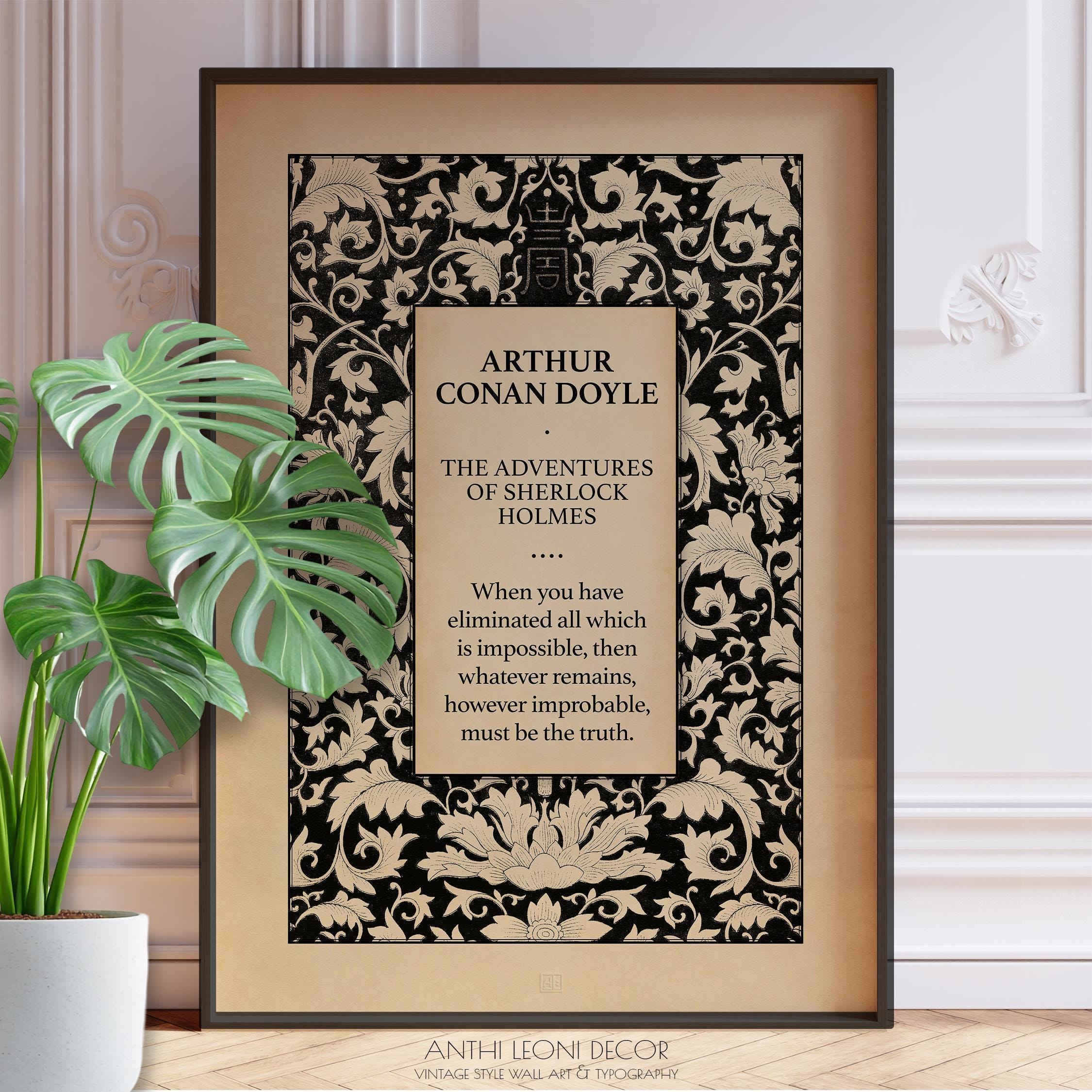 🔍 sherlock holmes quote print, vintage book cover art, detective fiction poster, arthur conan doyle wall art, mystery novel illustration, dark academia decor, victorian literary print, gothic library artwork, classic literature poster, literary gift for men, sherlock holmes decor, framed mystery art, sherlock study print, vintage reading nook art, book lover wall print, illustrated classic novel, vintage detective artwork, literary home office decor, moody regency poster, black and sepia art print