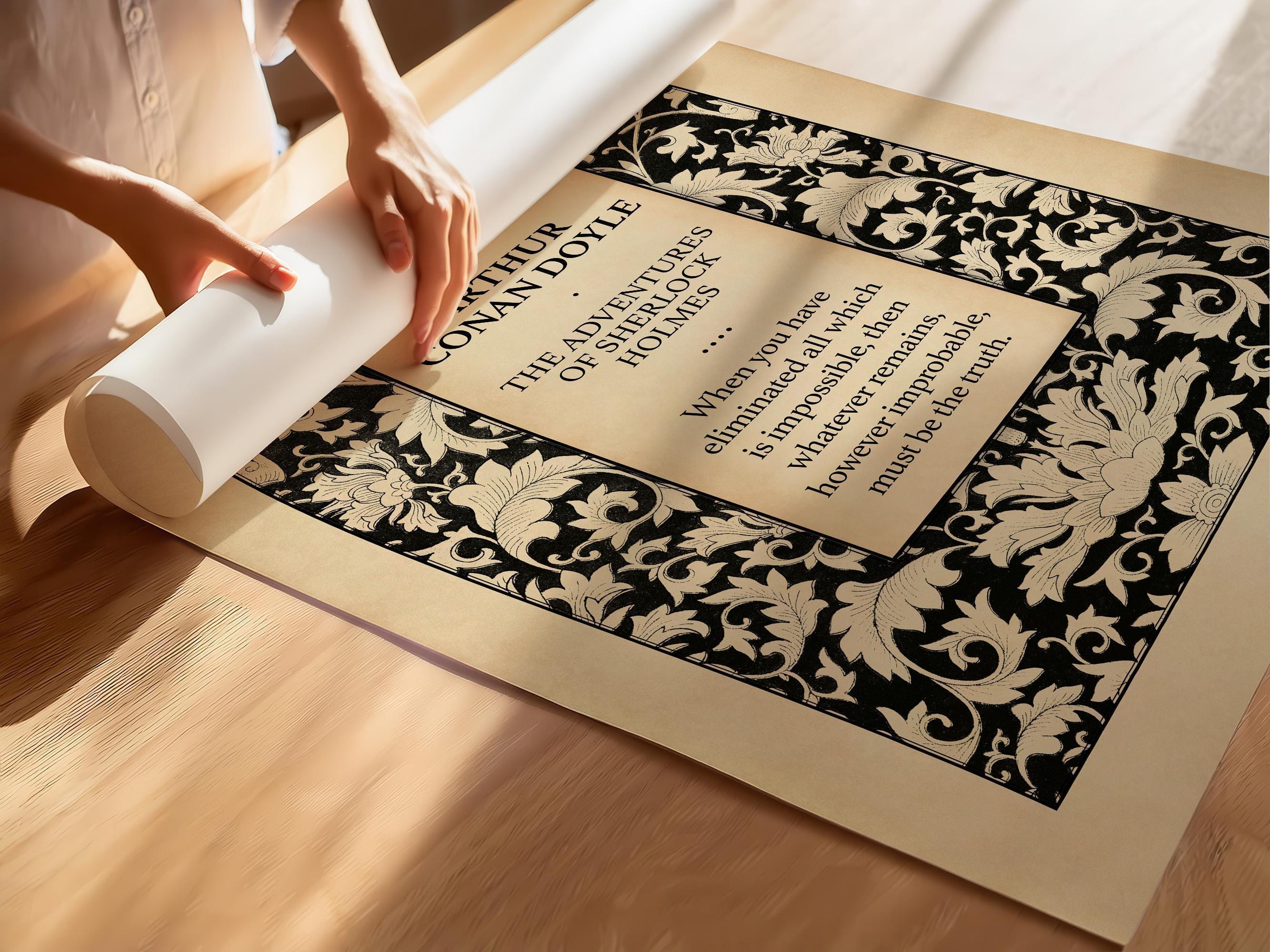Step into the fog-draped world of Baker Street with this vintage-style book cover art print featuring the quote The quote "When you have eliminated the impossible, whatever remains, however improbable, must be the truth" inspired by The Adventures of Sherlock Holmes. Remastered from classic editions, this design captures the mystery, intellect, and Victorian intrigue that have defined Arthur Conan Doyle’s most iconic creation. With its darkly elegant palette and illustrative detail, it’s the perfect homage to the great detective.