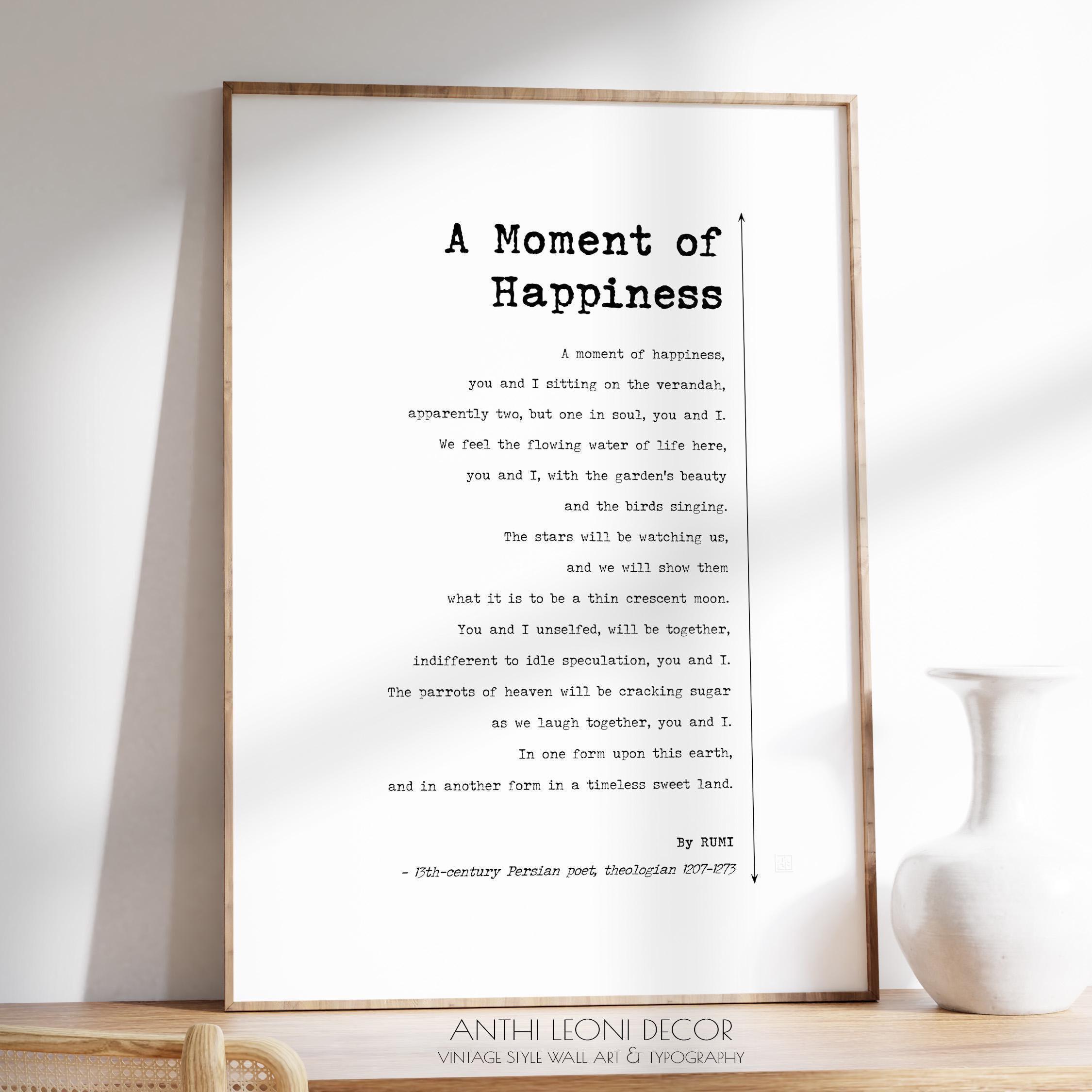 Rumi Poem Print - A Moment of Happiness, Romantic Wall Art Poster