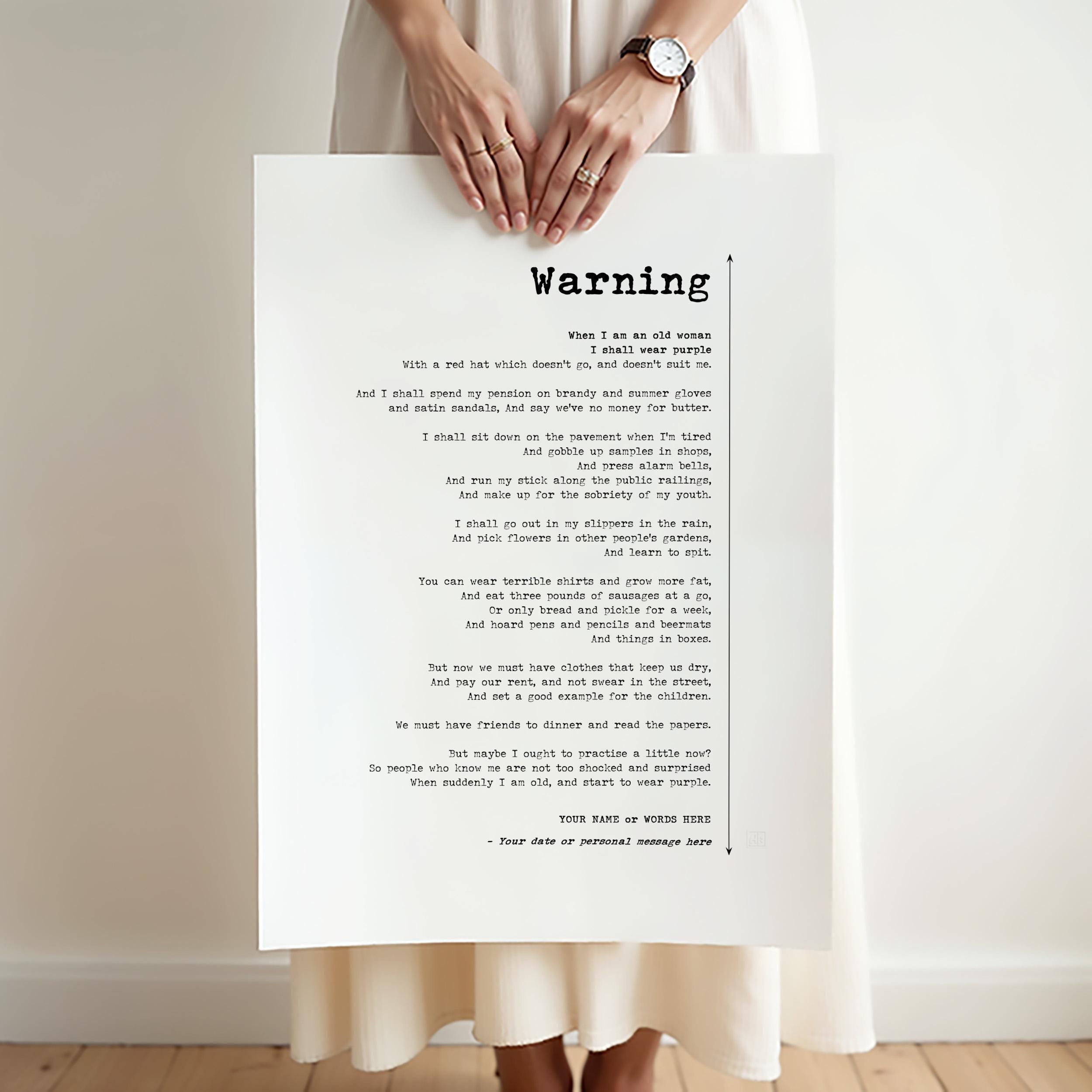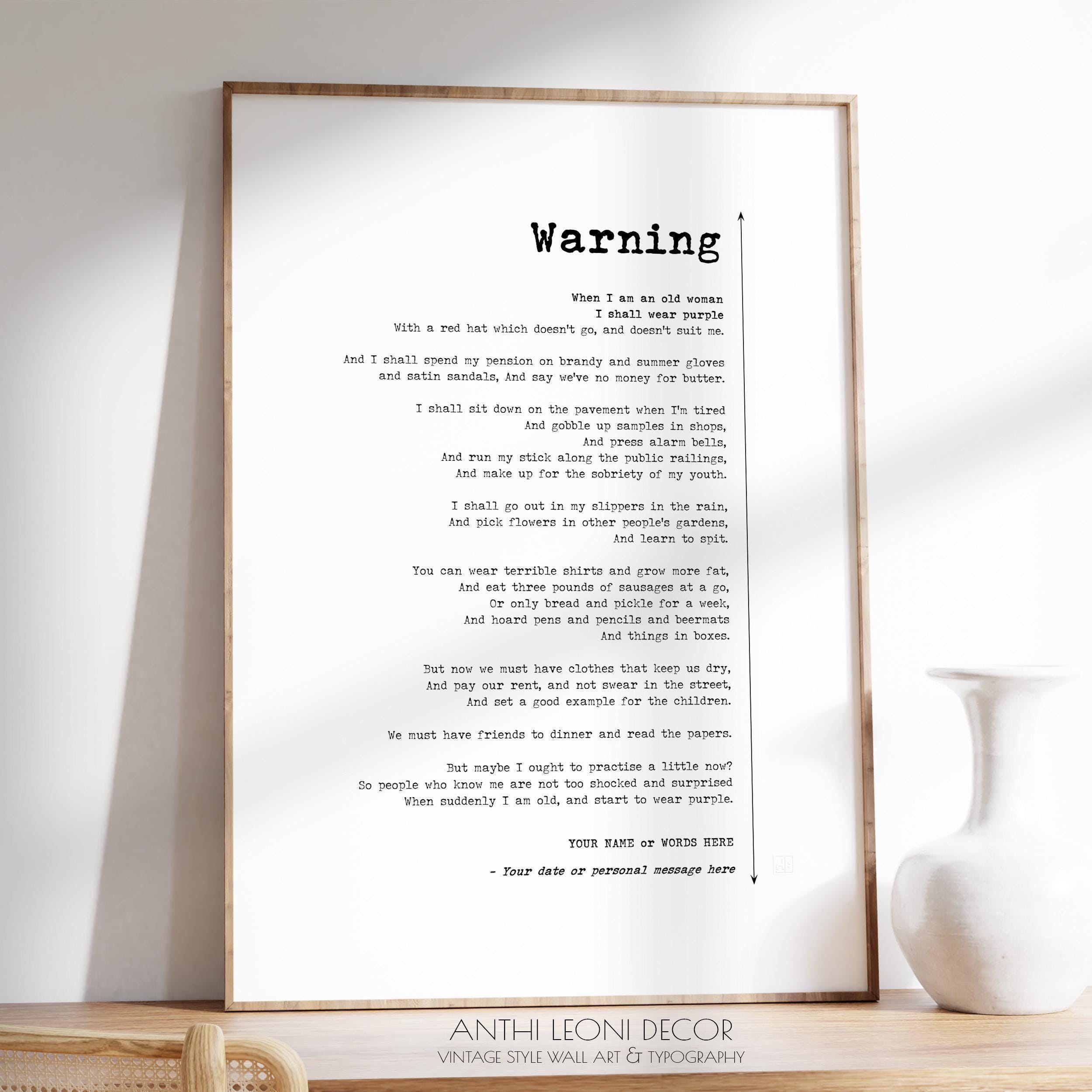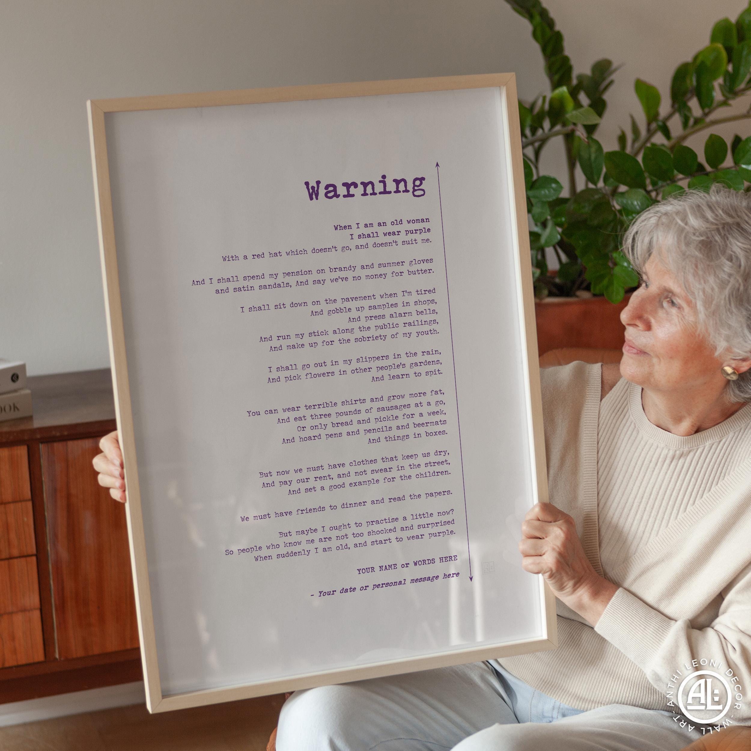 Milestone birthday gift, personalised poem wall art, Poem art for grandma's 50th, customisable, Personalised 60th birthday gift, poem print for mom, Custom birthday decor, poem print for aunt, Grandmothers 40th birthday, personalised wall art, poem, Milestone birthday gifts, poem print for special friend, 50th birthday poem wall art,, custom gift for mother, Personalised poem art for 60th birthday, gift for grandma, Customisable birthday poem print, gift for aunt or friend #WarningPoem #PoetryPrint #BirthdayGift #MilestoneGift #GrandmotherGift #MotherGift #AuntGift #HomeDecor #CustomisableGift #PersonalisedArt #PoetryPrint