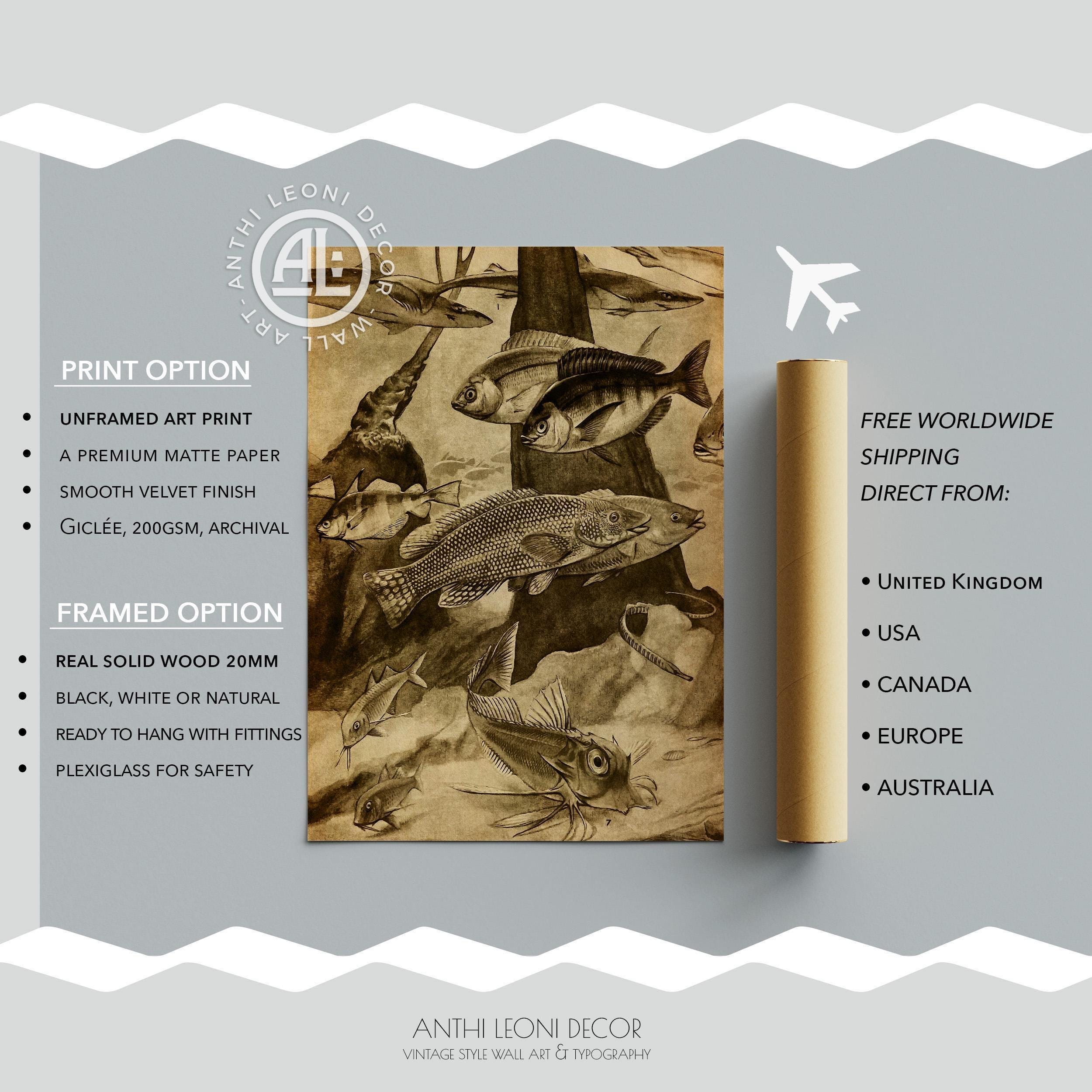 British Offshore Fishes of the Ocean – Sepia Wall Art Print - Framed or Unframed Gift