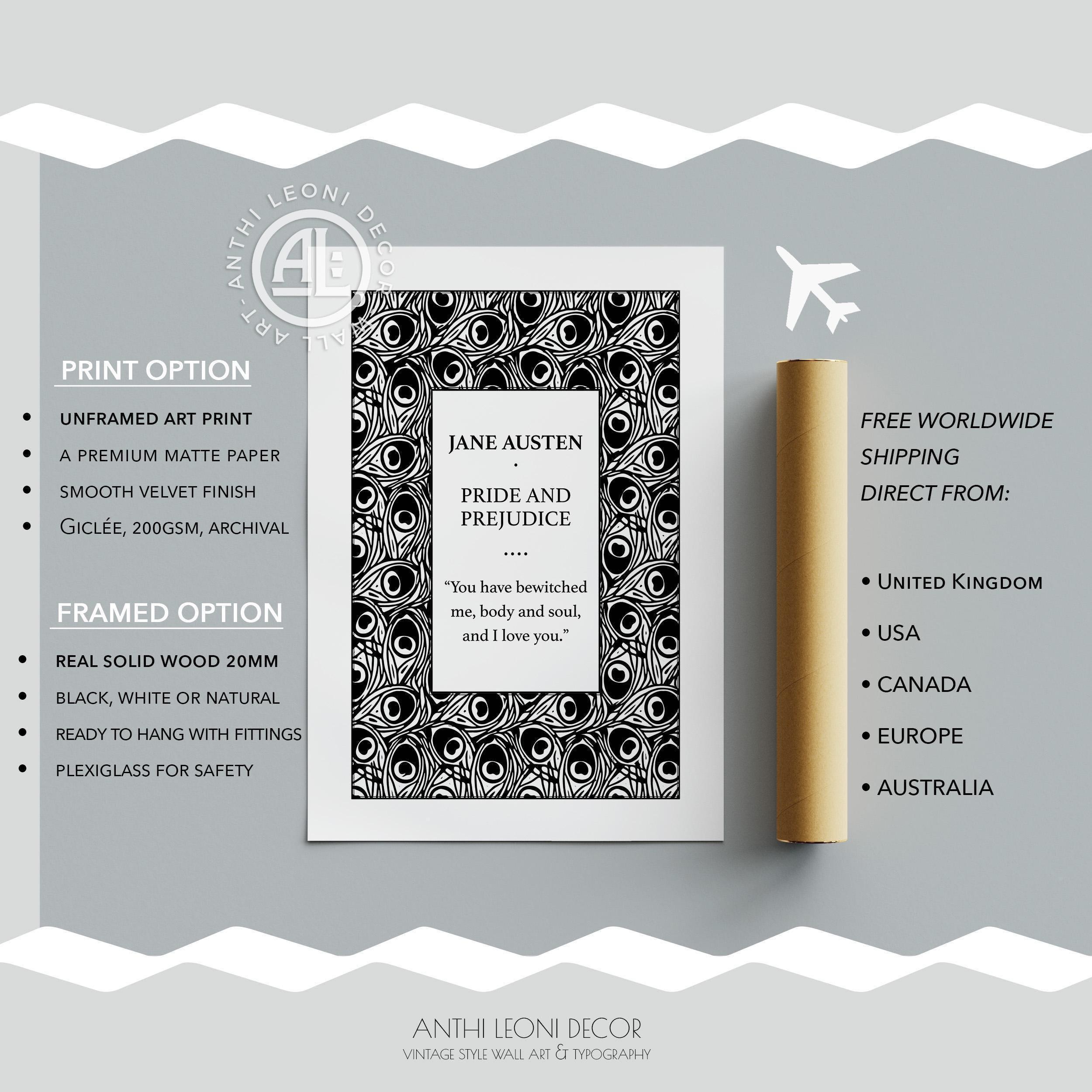 Pride and Prejudice Book Quote Poster Print – Jane Austen Romantic Wall Art - Framed or Unframed Love Gift