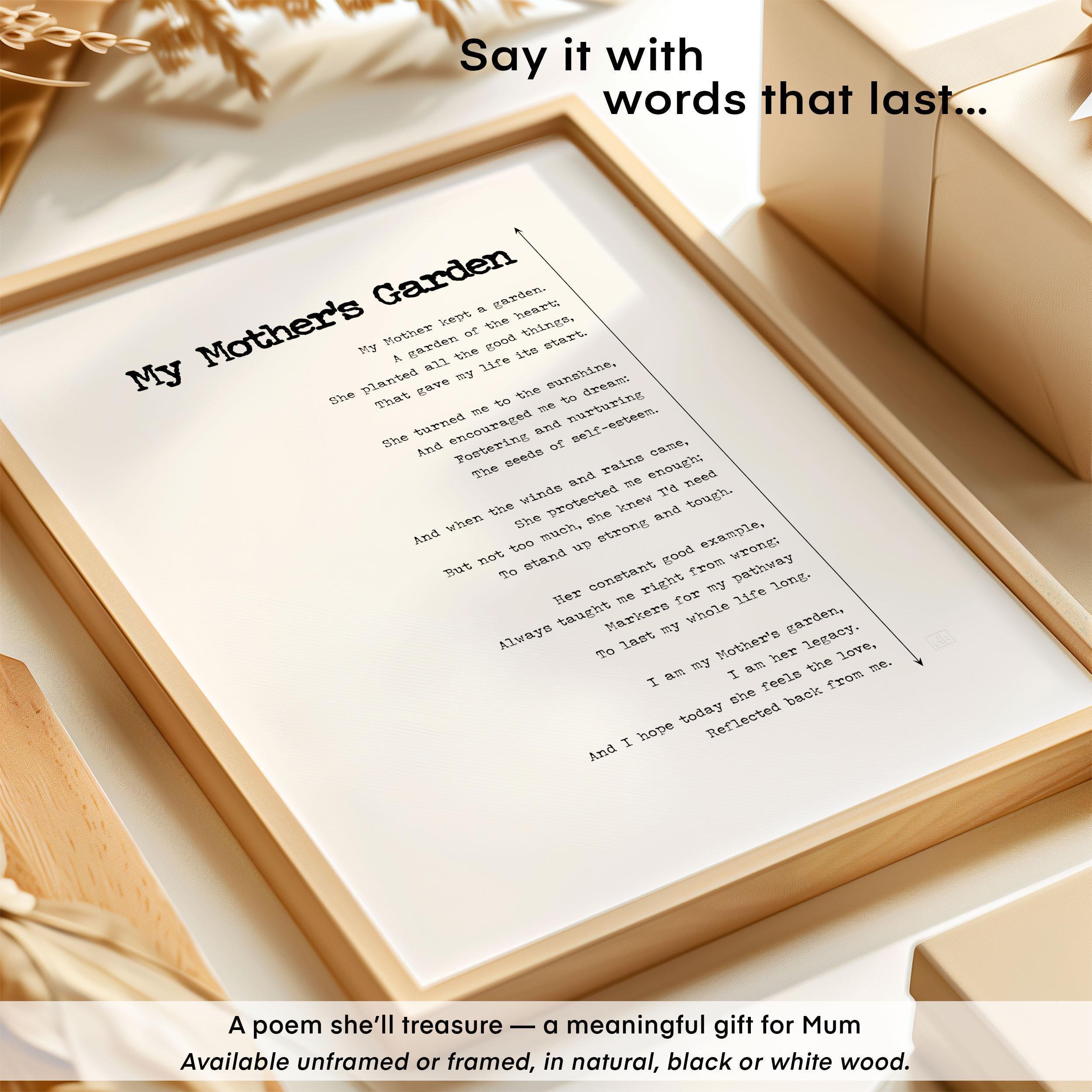 Gift for Mum – My Mother’s Garden Poem Poster Print, Mother’s Day or Birthday Present, Framed or Unframed