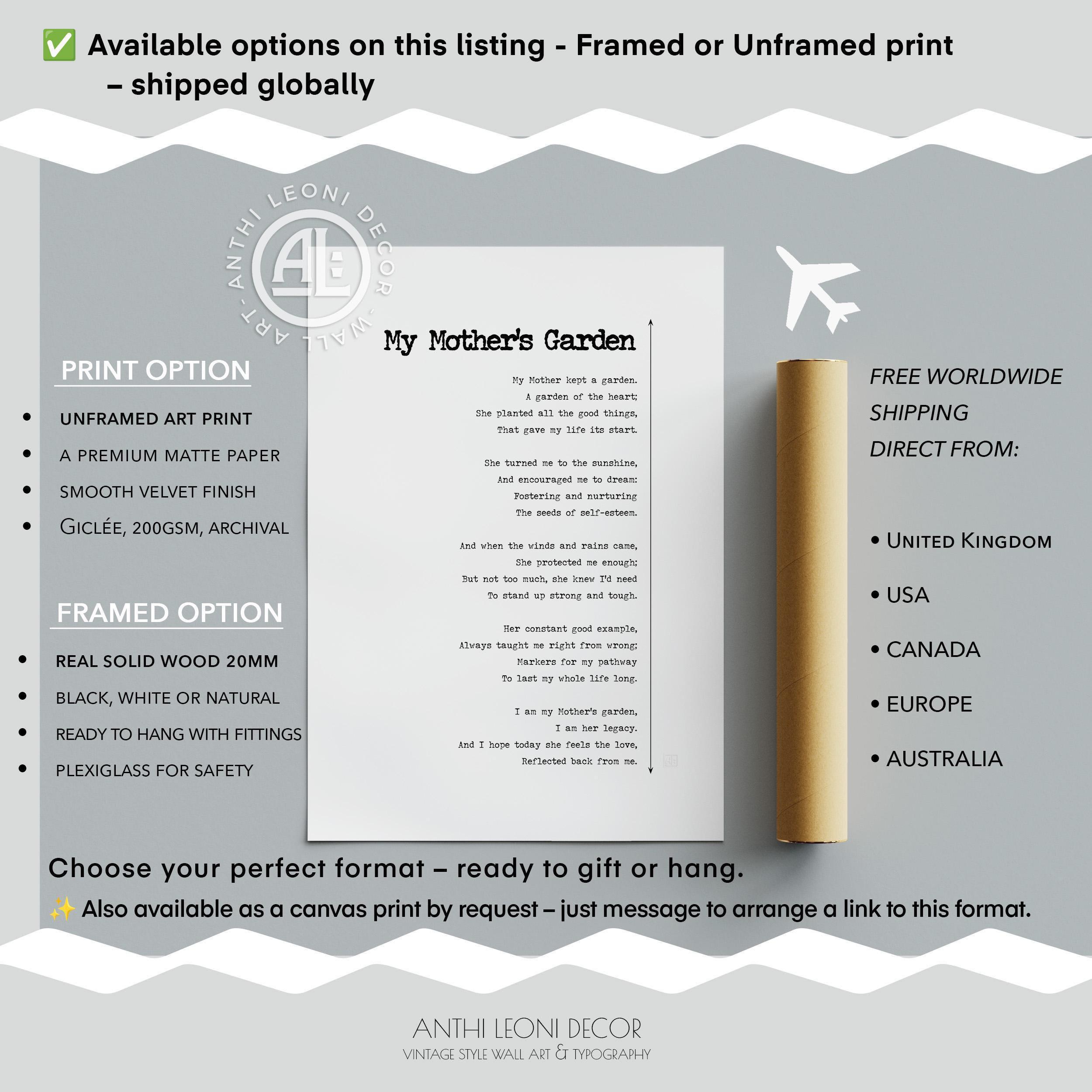 🔍 gift for mum, mothers day gift for mum, birthday gift for mum, christmas gift for mum, my mother’s garden poem, my mother kept a garden print, poem poster for mum, poem print for mum, sentimental gift for mum, from daughter gift mum, from son gift mum, poetry wall art uk, mum wall art, framed poem for mum, neutral wall art, classic poem poster, elegant poem print, living room wall decor, poster print for mum, present for mum