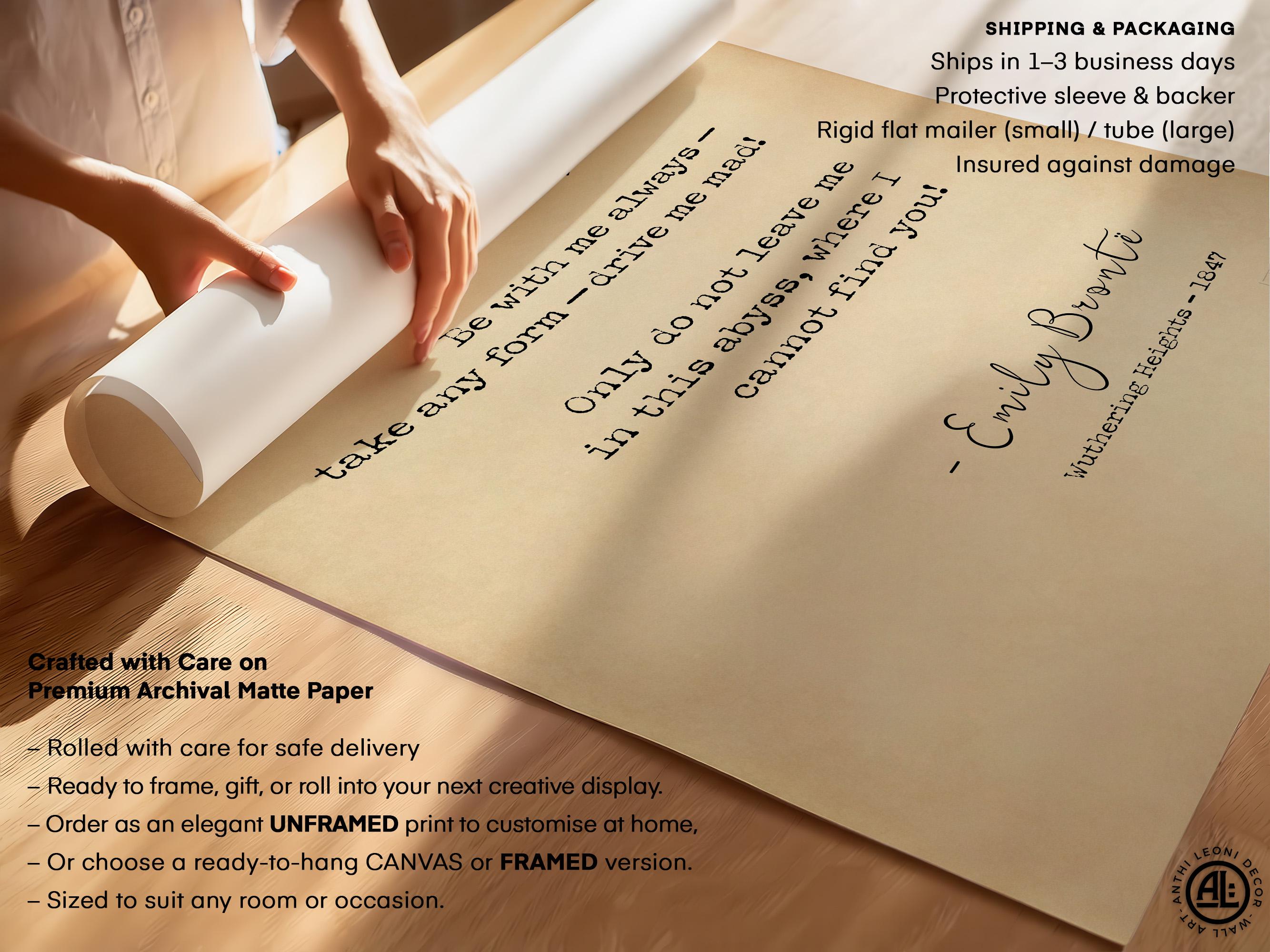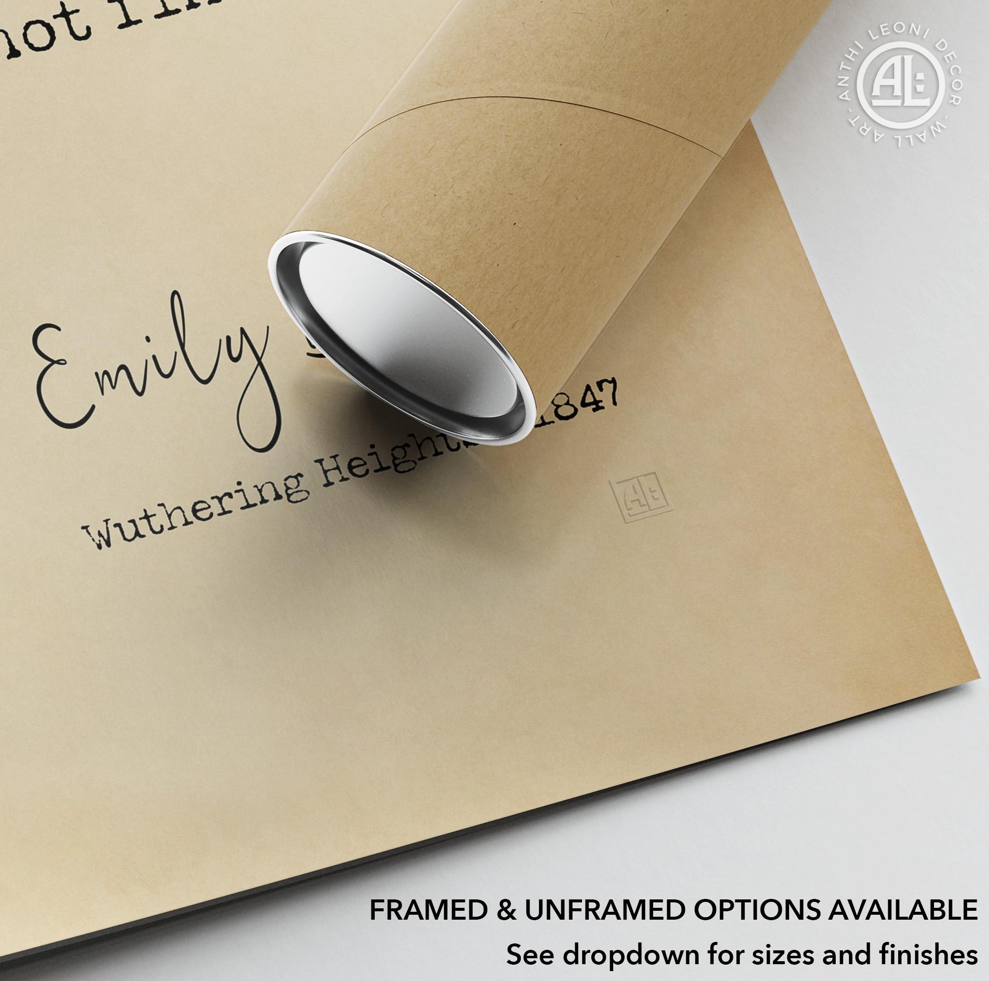 Whether styled as a standalone feature or as part of a wider literary collection, this Emily Brontë quote print works beautifully in bedrooms, reading corners, studies, or more refined living spaces. It offers both visual simplicity and emotional impact.
