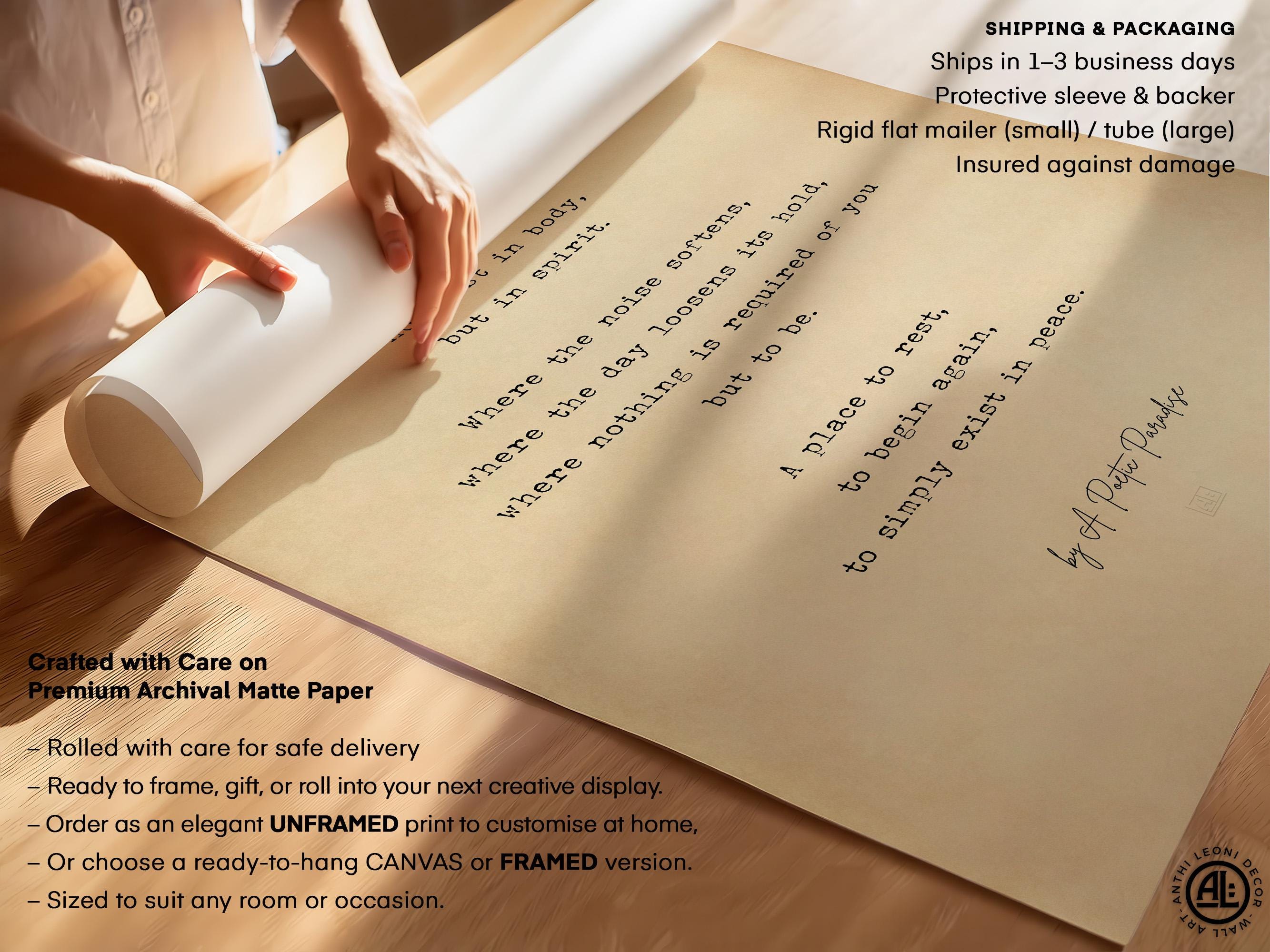 A thoughtful choice for a housewarming gift, new home present, or a meaningful piece to mark a fresh chapter. This poetry print also works beautifully as a personalised keepsake, with an optional footer dedication to add a subtle, personal touch.