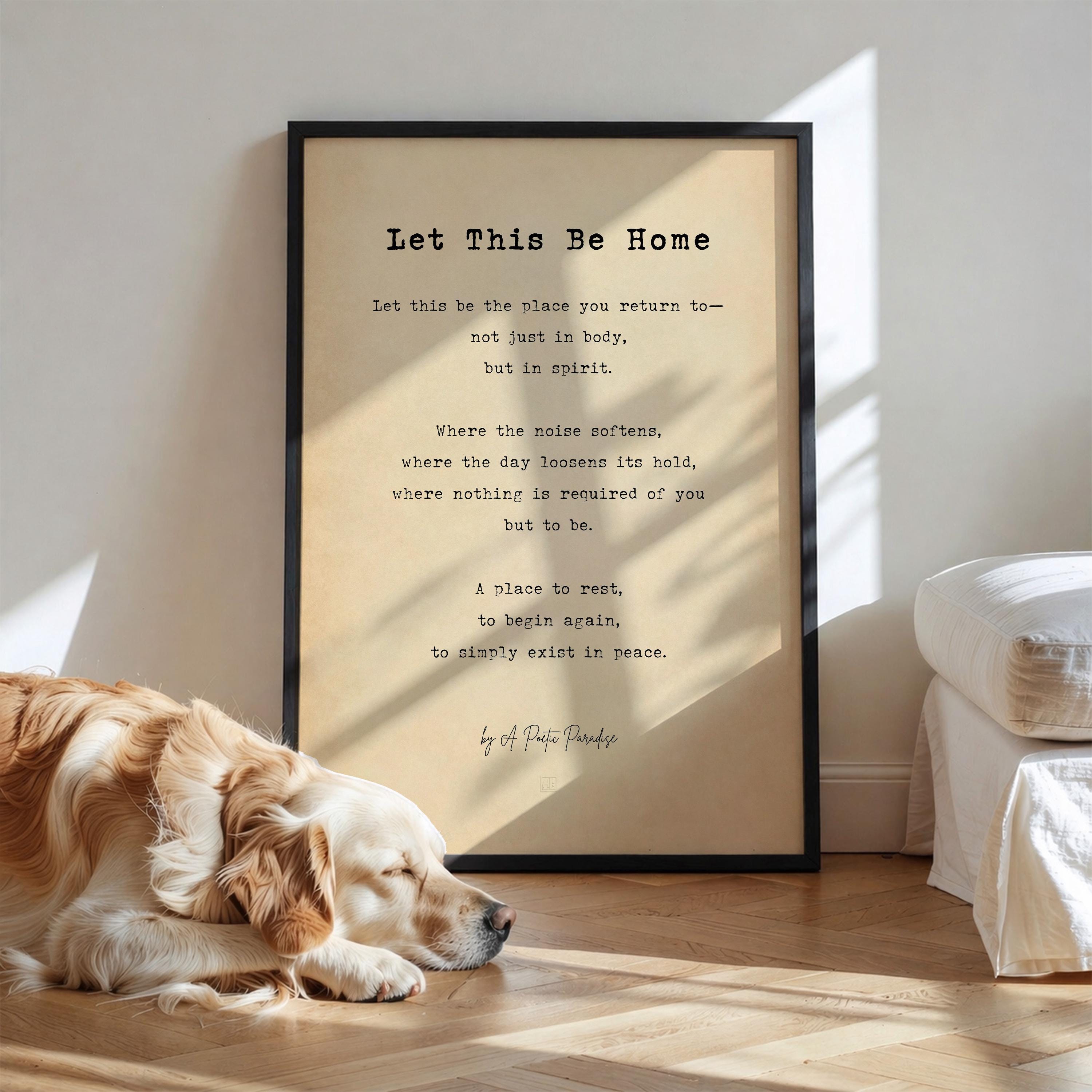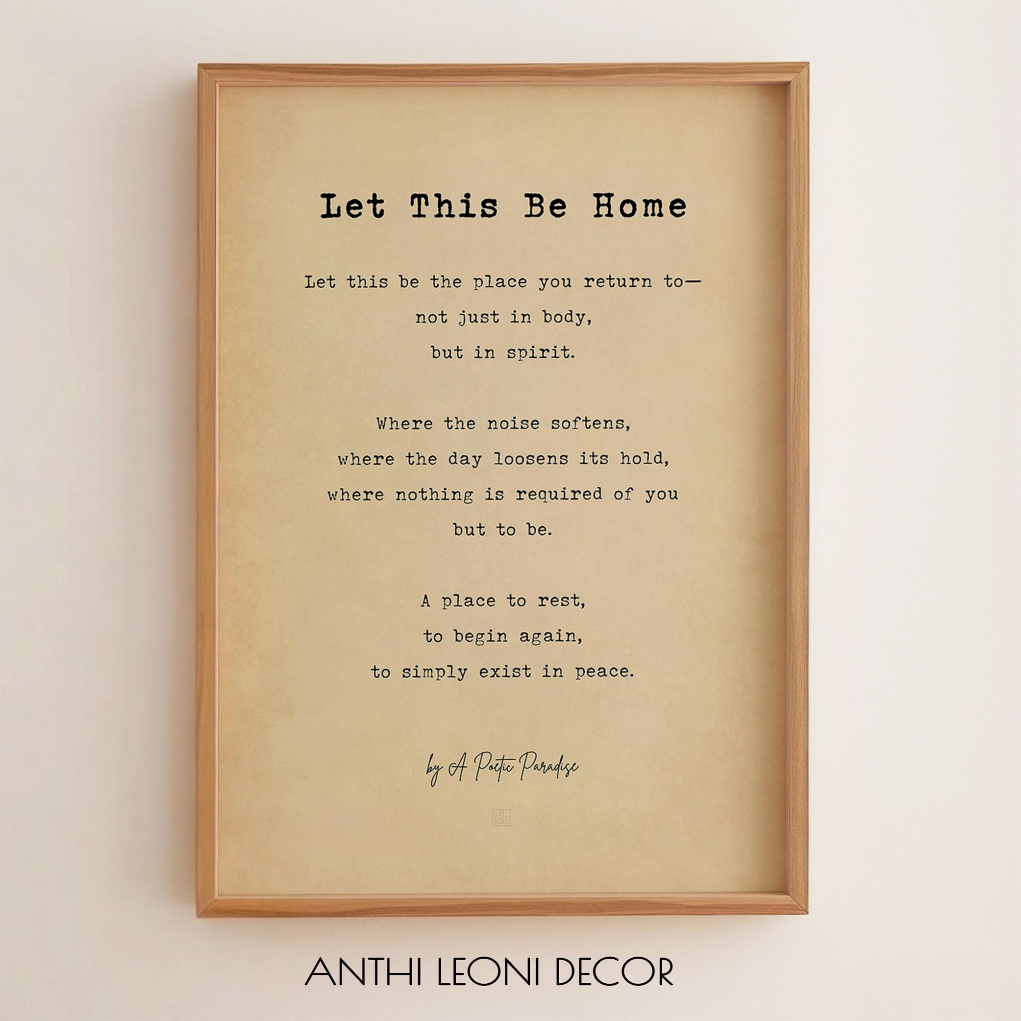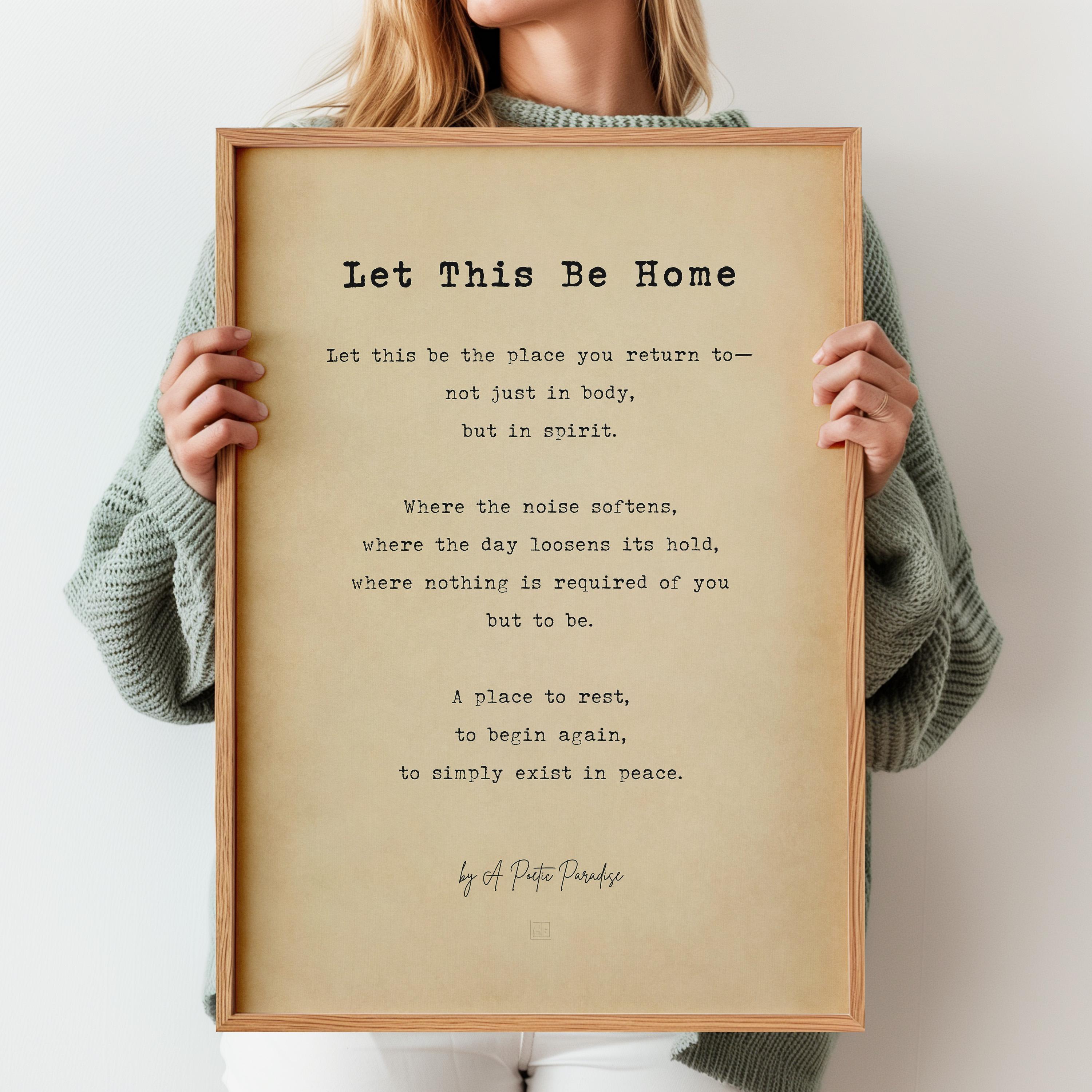 This home poem print captures the feeling of returning to a place that restores you—where the day softens, the noise fades, and you are free to simply be. With soft vintage tones and elegant typography, this minimalist poetry wall art print is ideal for creating a warm, welcoming environment in a bedroom, hallway, or living space.