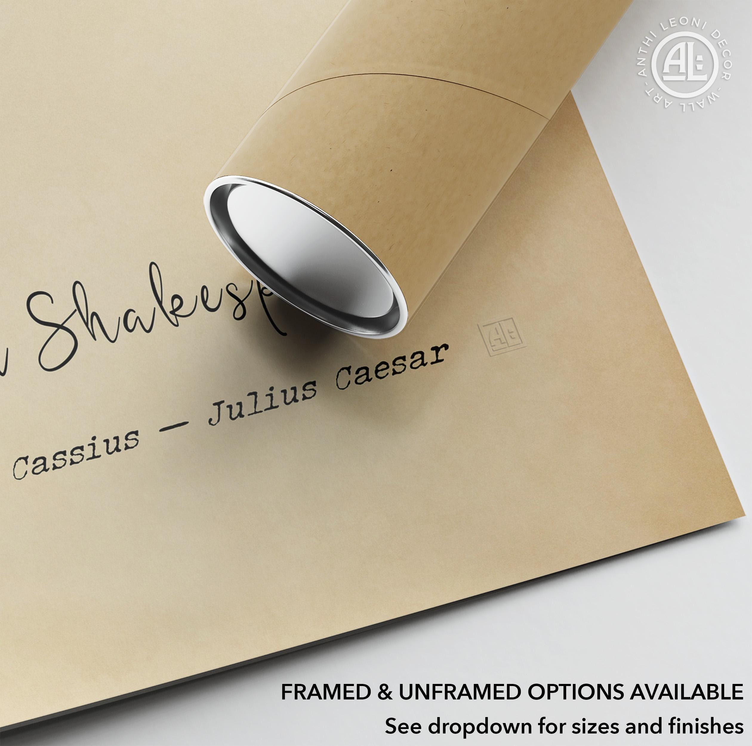 This striking poster print brings one of the most compelling lines from Julius Caesar into a clean, modern format designed for impact and clarity. Spoken by Cassius, the quote challenges the idea of fate and places responsibility firmly within our own hands — making it highly relevant for today’s world of ambition, growth, and self-direction.