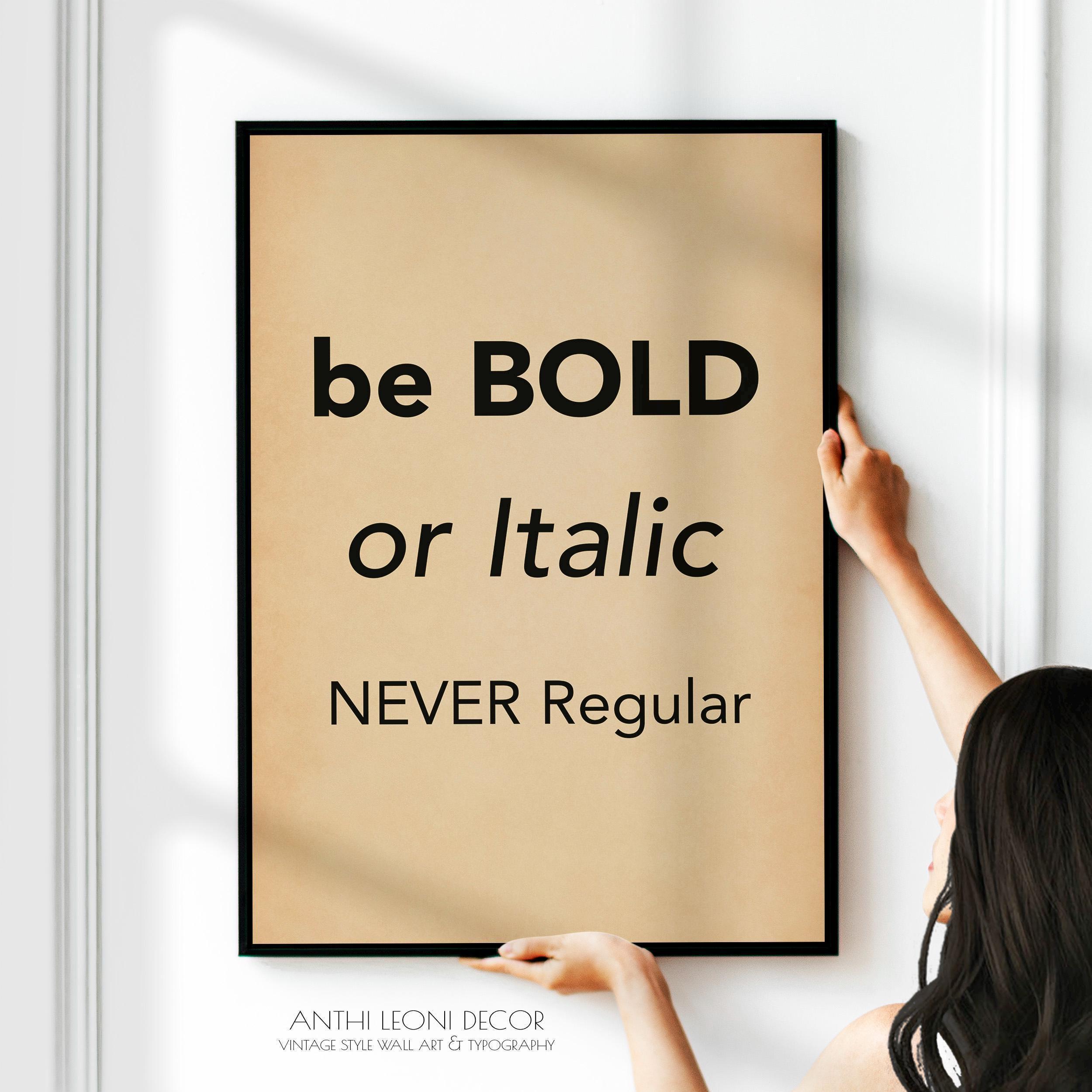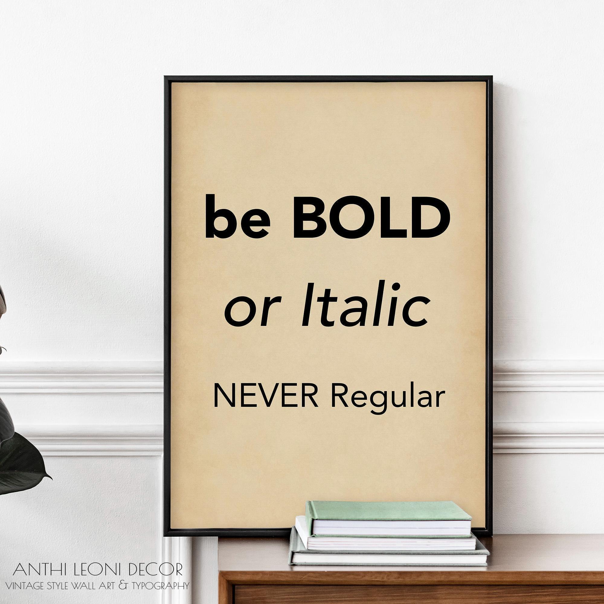 Typography Wall Art | Be Bold or Italic Never Regular Quote Print | Antique Style Type Poster | Motivational Office Decor | Framed or Print