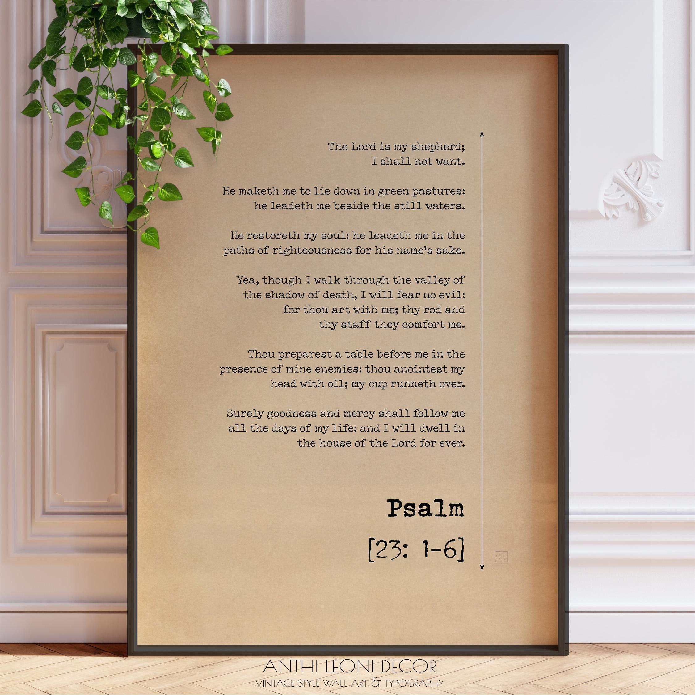 Psalm 23 Print The Lord Is My Shepherd Bible Verse Wall Art Christian Home Decor Vintage Bible Prints Faith Poster Gifts | PRINTED