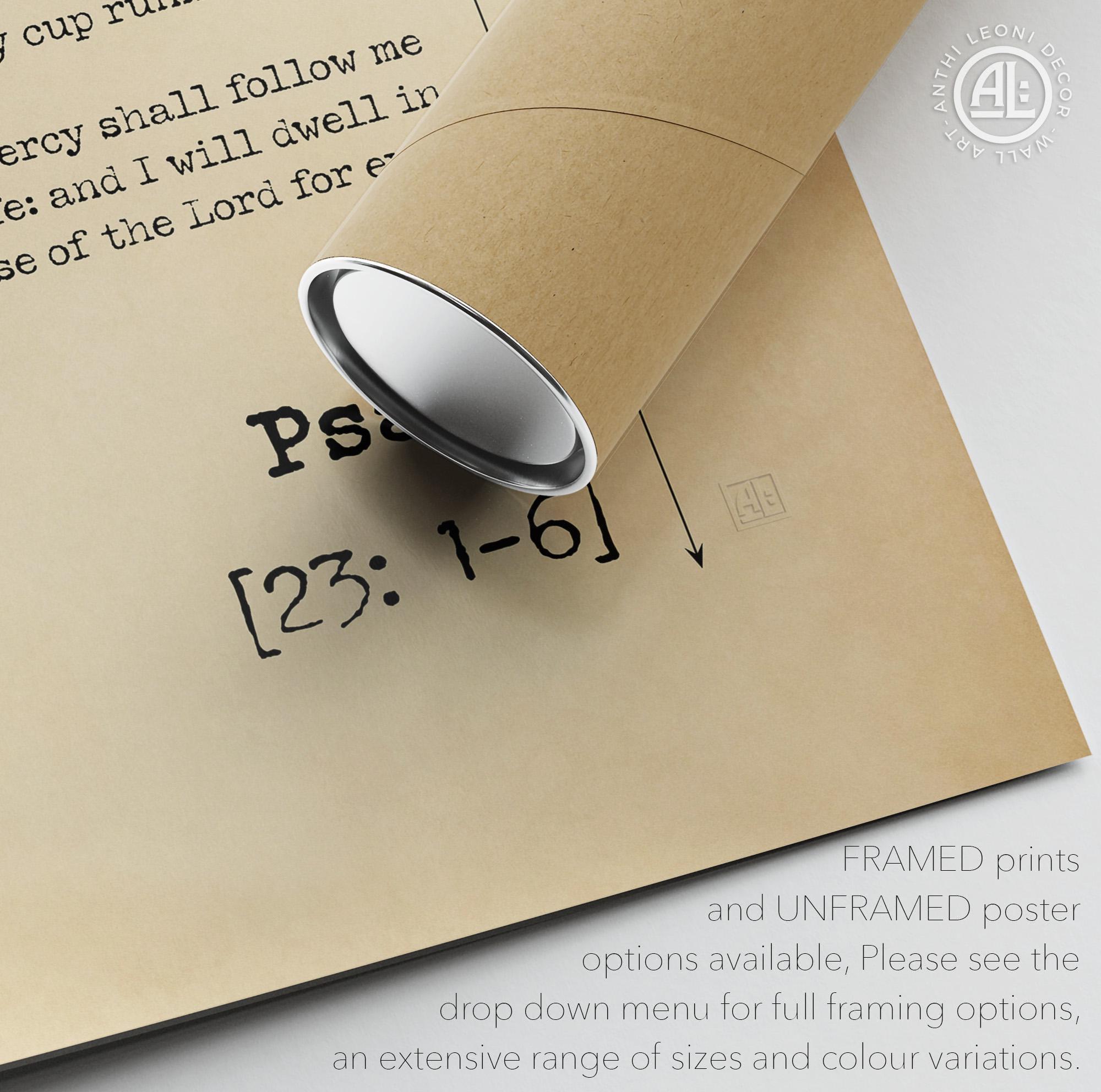 Bible Verse Prints - Psalm 23 - The Lords Prayer - The Lord is my Shepherd - Daily bible verse - Christian literature - Vintage style wall art for all occasions.