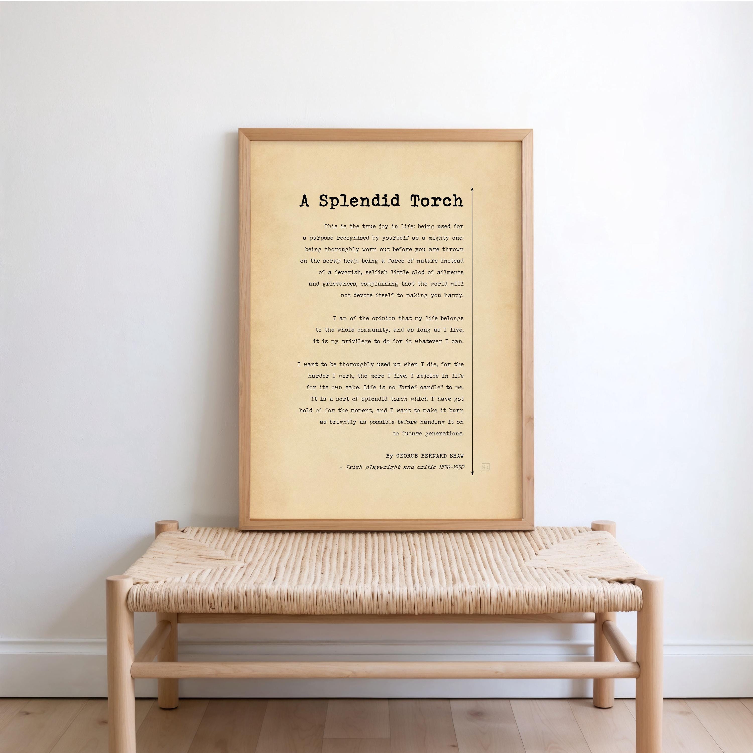 π A Splendid Torch quote print, George Bernard Shaw quote, vintage quote wall art, literary quote print, motivational wall decor, inspirational quote print, antique style wall art, vintage typography poster, elegant literary print, thoughtful gift idea, minimalist vintage art, office motivational print, home office wall art, graduation quote print, neutral typography decor, small business wall art, timeless inspirational print, British playwright wall art, classic literature poster, positive quote decor